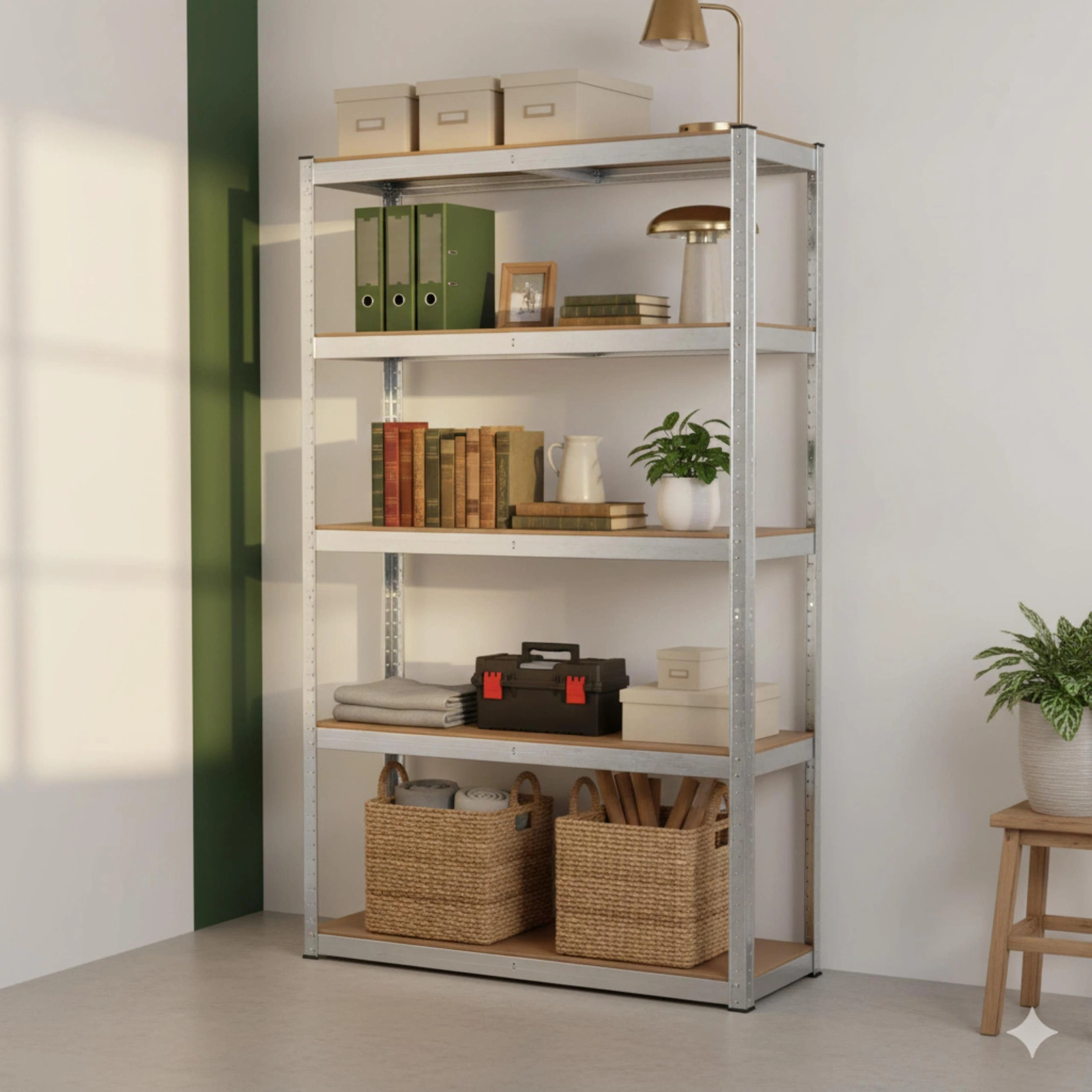 Rama wykonana ze stali ocynkowanej to gwarancja odporności na rdzę i wilgoć. Dzięki temu regał świetnie sprawdzi się nawet w trudnych warunkach, np. w piwnicy, garażu czy magazynie, gdzie panuje podwyższona wilgotność powietrza.