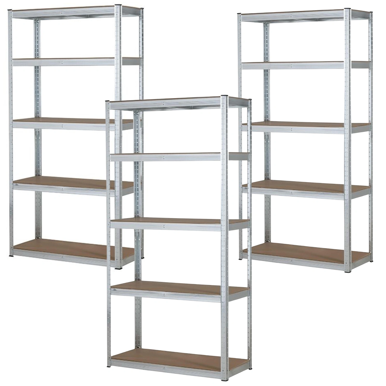 - 3x Kompletny regał magazynowy Avenido AV 6816 – wszystkie elementy potrzebne do szybkiego montażu trzech regałów.