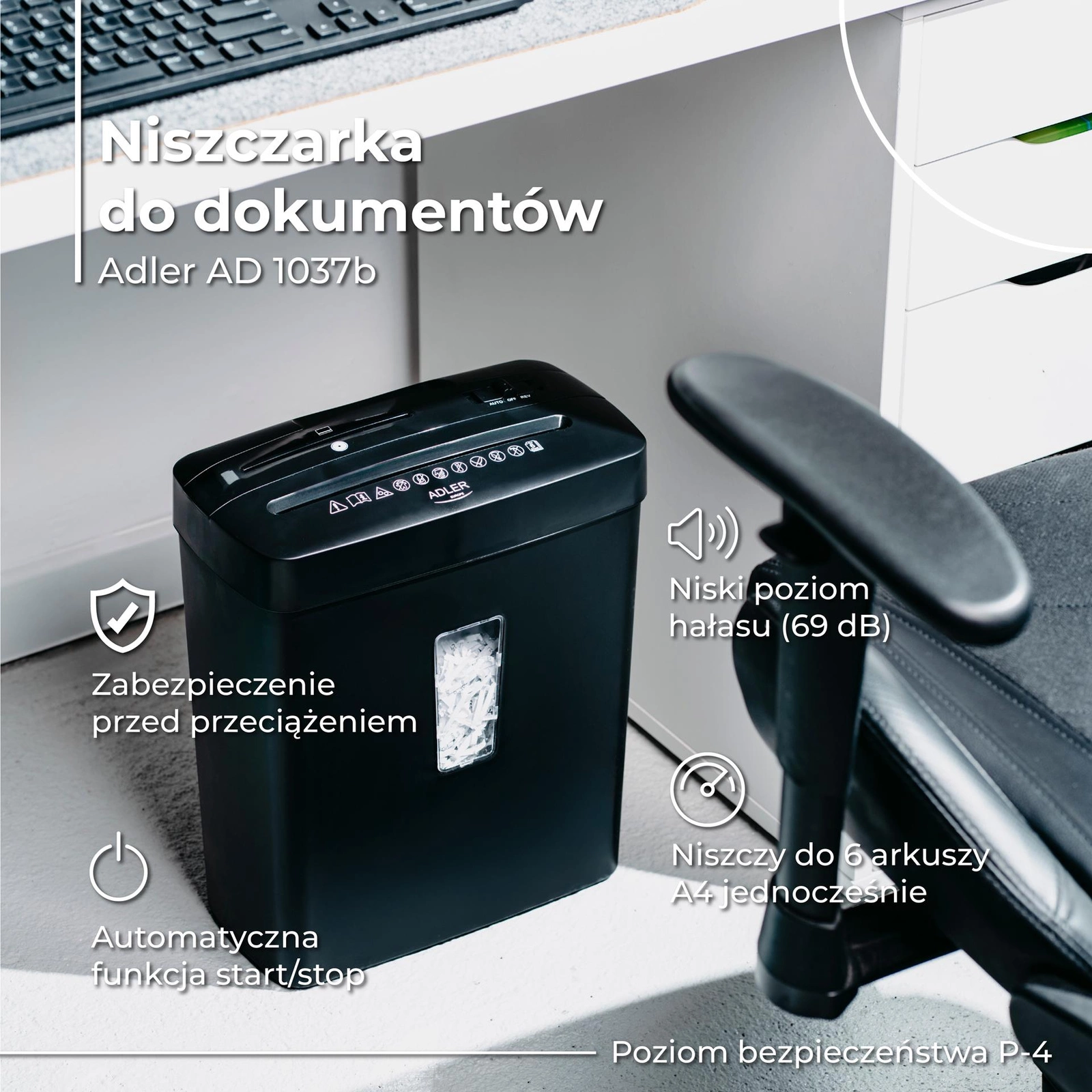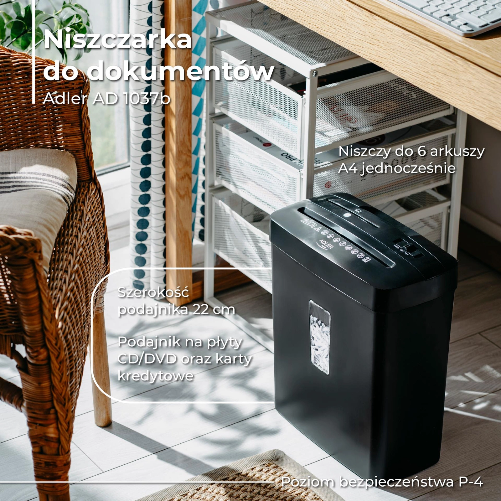 Niszczarka do dokumentów Adler 200W czarna | AD1037B