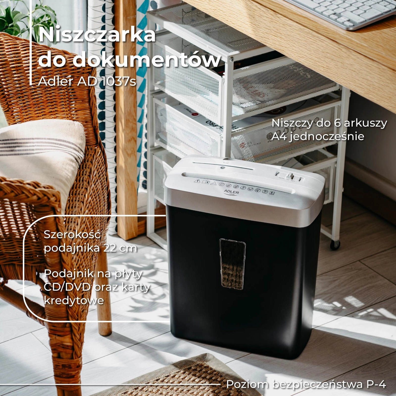 Niszczarka do dokumentów 200W srebrna - Adler AD1037S
