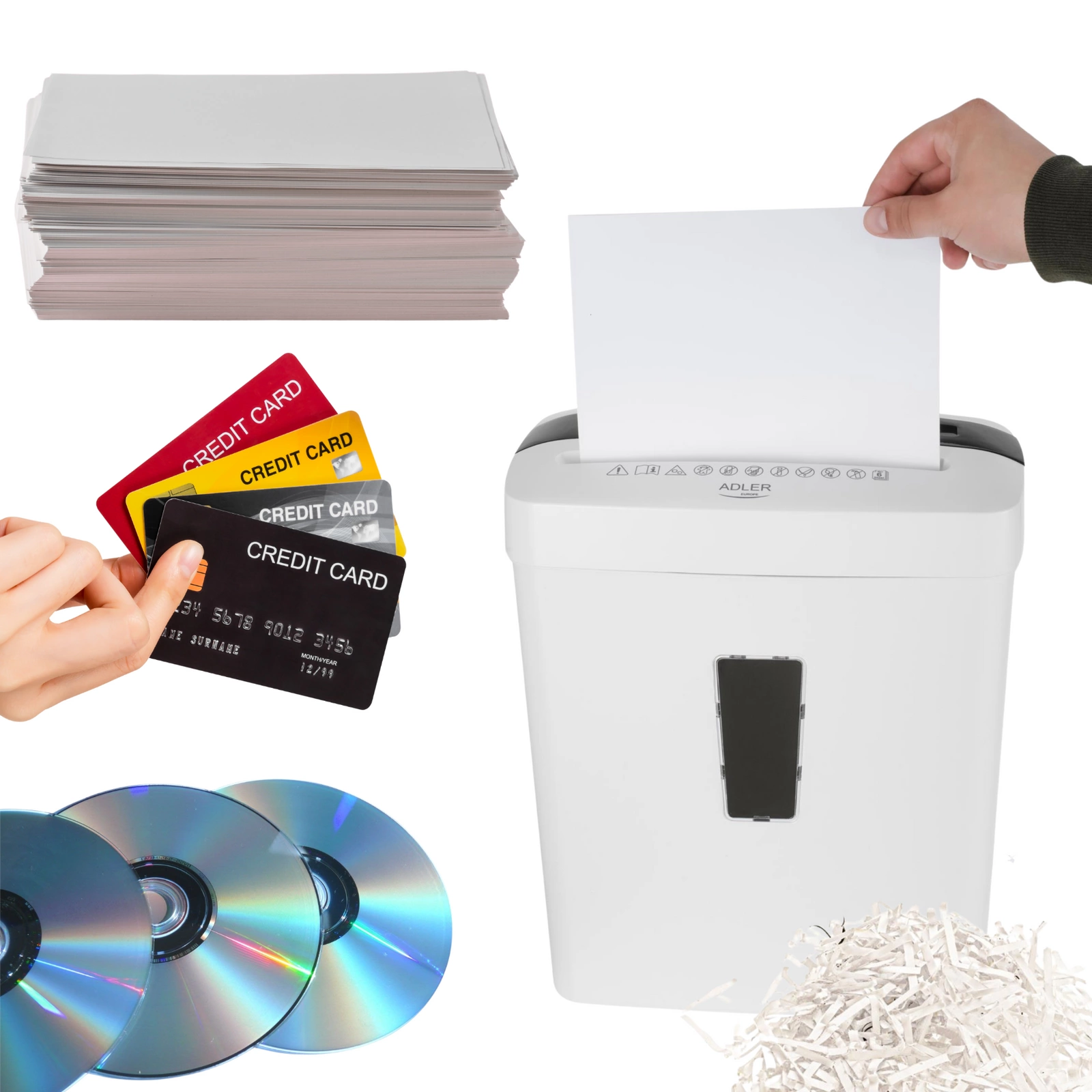 - Niszczy papier, karty kredytowe oraz płyty CD/DVD - kompleksowa ochrona danych