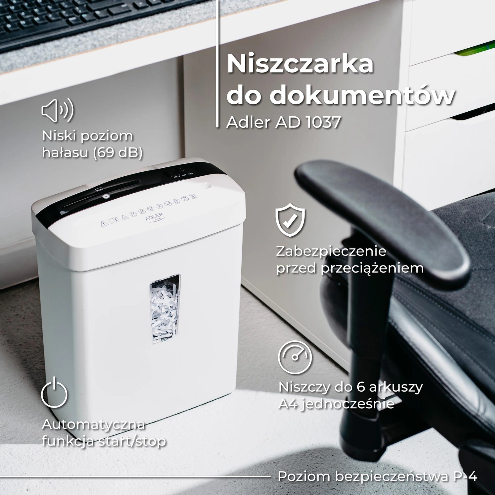 - Poziom bezpieczeństwa P-4 - idealny do dokumentów poufnych