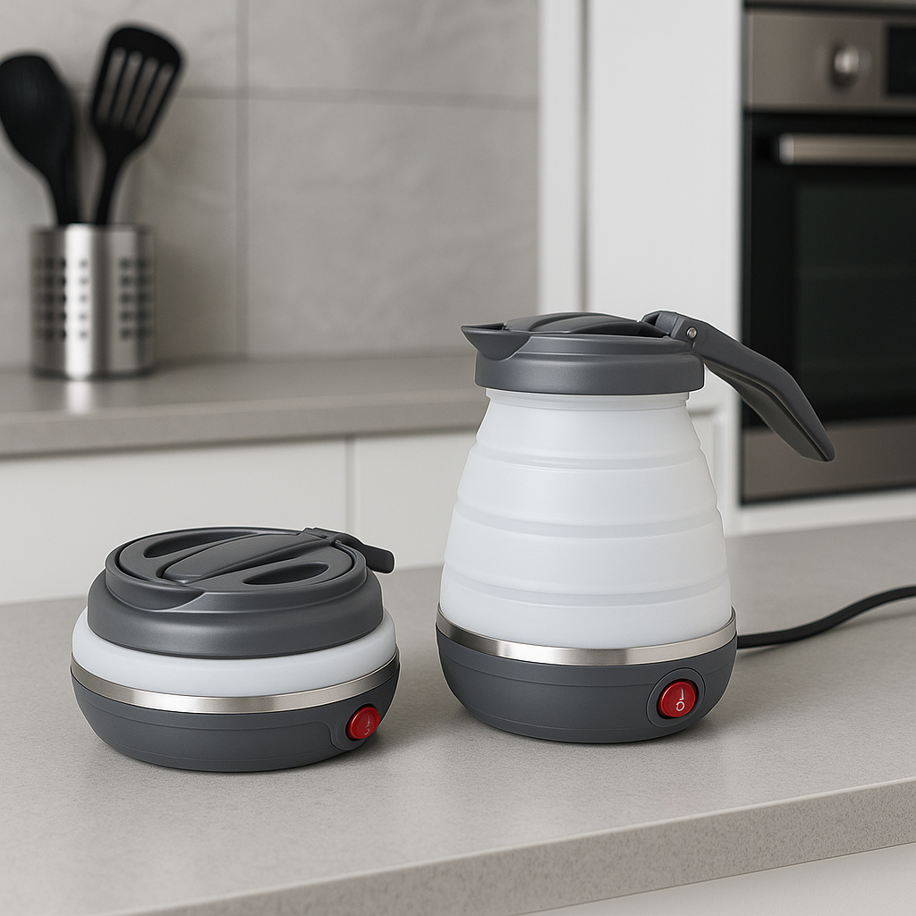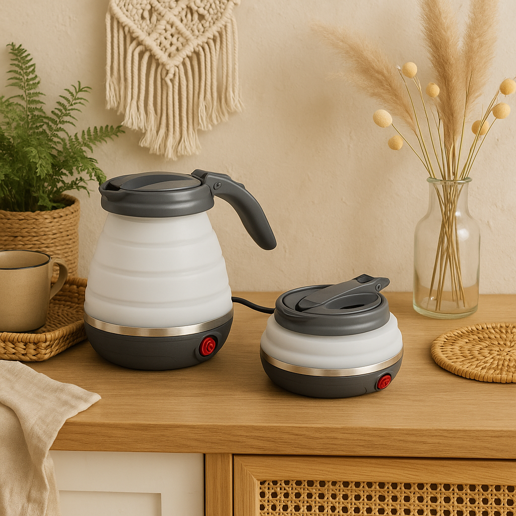 ▶️ Składana silikonowa obudowa – po złożeniu czajnik ma tylko 9,5 cm wysokości