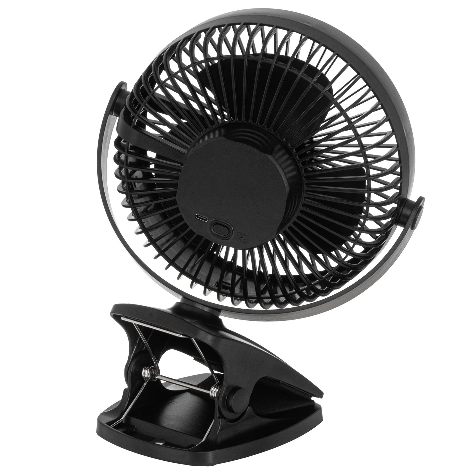 Typ: wentylator bezprzewodowy z klipsem Zasilanie: USB 5V Akumulator: litowo-jonowy 3,7V 3000 mAh Czas ładowania: 6 godzin Prędkości nawiewu: 3 Poziom hałasu: do 49,5 dB Średnica śmigła: 15,5 cm Przepływ powietrza: m³/min Moc: 5W Obudowa: ABS + PP Kolor: czarny Wymiary: 200 × 125 × 280 mm Wtyczka: USB-C (kabel 100 cm w zestawie)