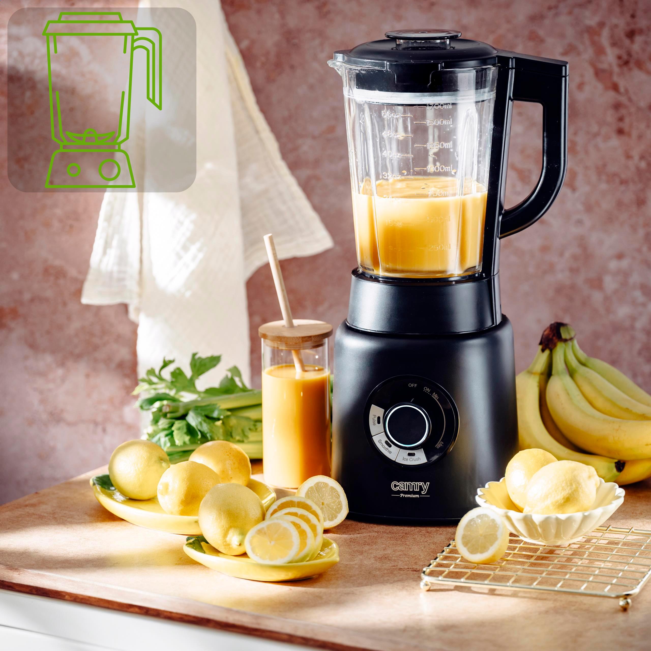 1,7l kielich z grubego szkła zapewnia dużą pojemność oraz trwałość, co pozwala na przygotowywanie większych porcji za jednym razem.