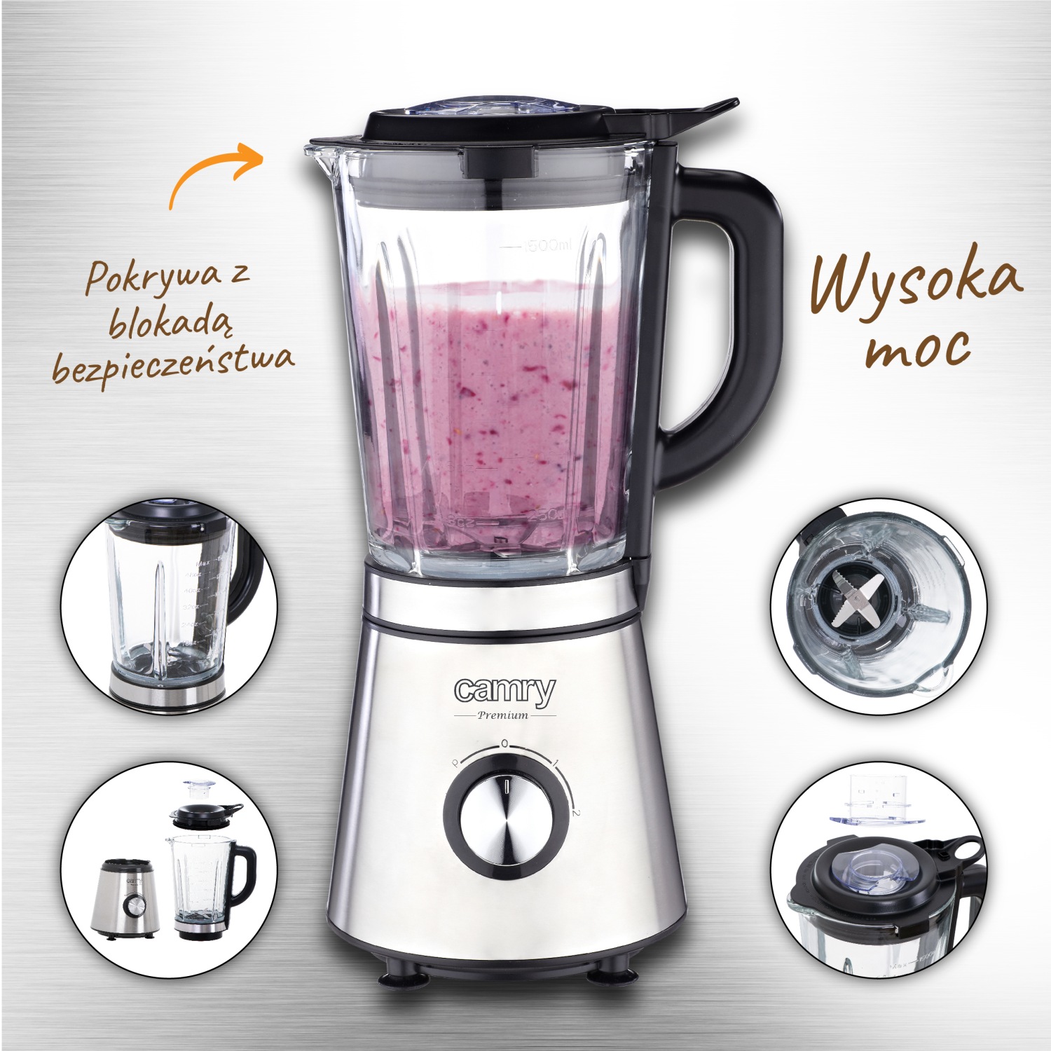 - Dodatkowe bezpieczeństwo: specjalna blokada ostrzy. Blender uruchomi się jedynie przy dokładnym zamknięciu pokrywy.