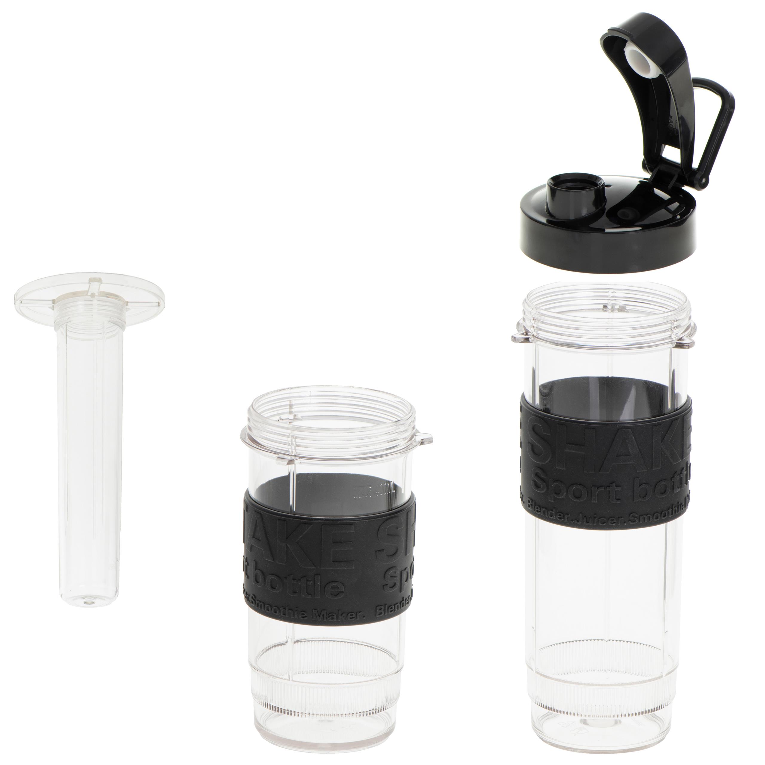 ✅Przygotuj i pij! Koniec z przelewaniem koktajlu lub smoothie z blendera do osobnego pojemnika - napój masz od razu w kubku, który zabierzesz ze sobą do pracy, szkoły lub w podróż. 2 bidony sportowe o pojemności: 570ml i 400ml, mają silikonowe osłonki chroniące przed wyśliźnięciem.