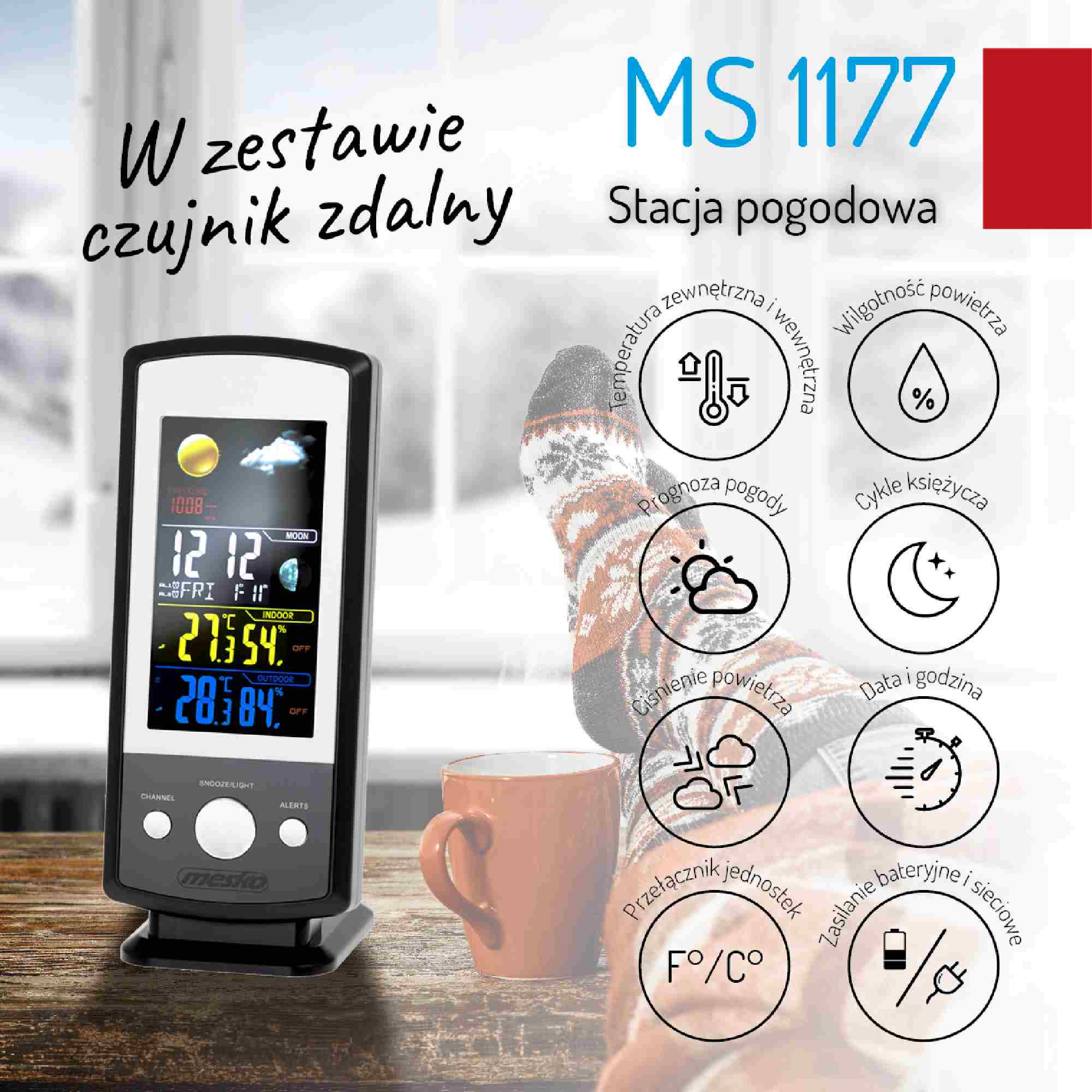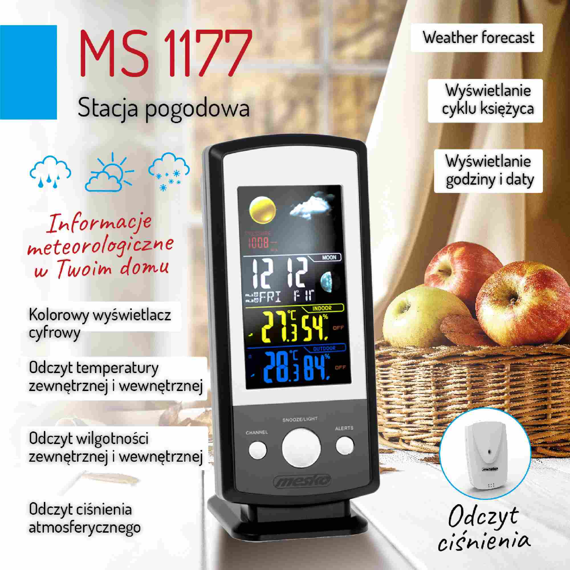 Cyfrowa Stacja Pogodowa z Termometrem i Higrometrem, Mesko MS 1177