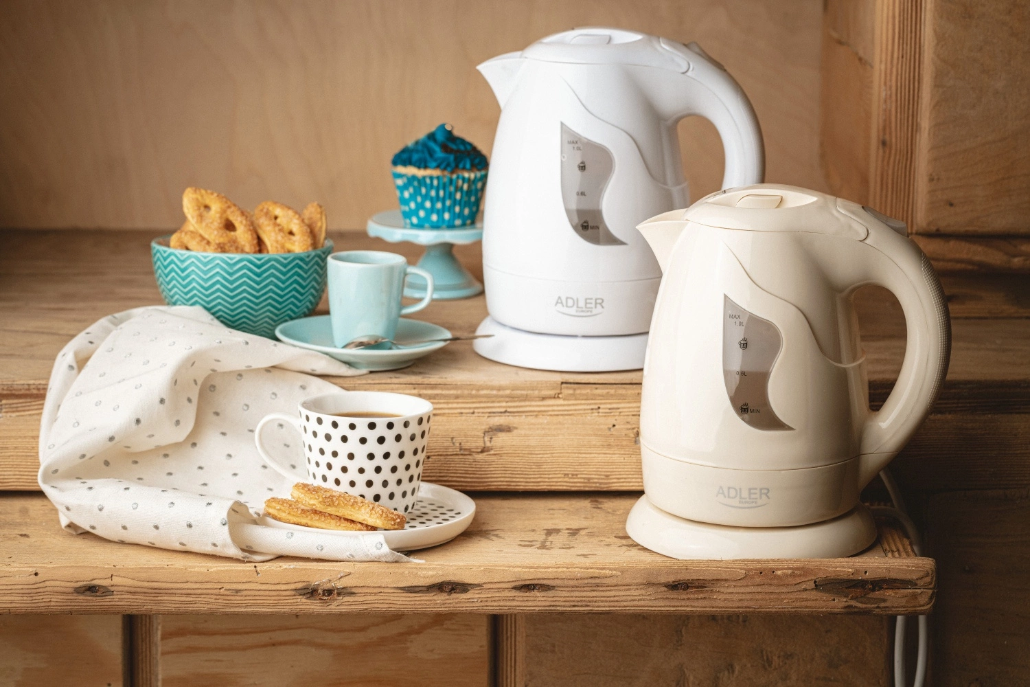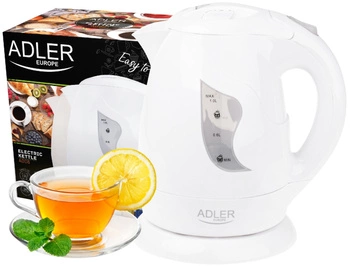 Czajnik Adler Plastikowy 1L, Lekki i Stylowy, Biały ADL-PLK-01