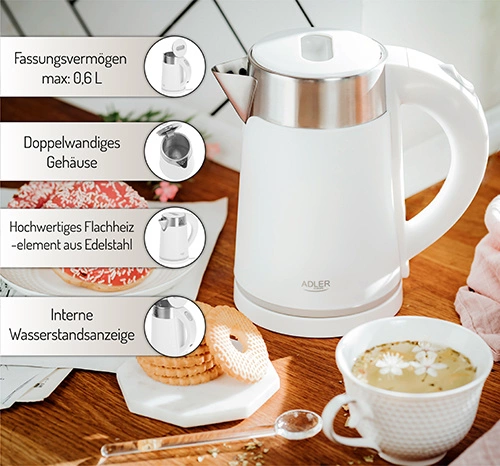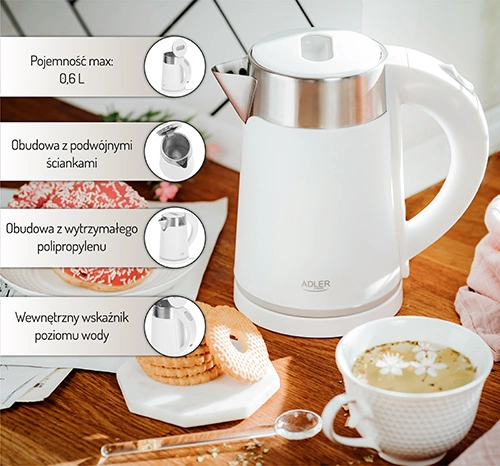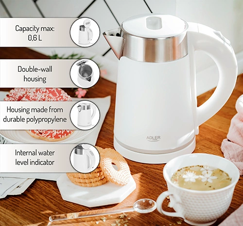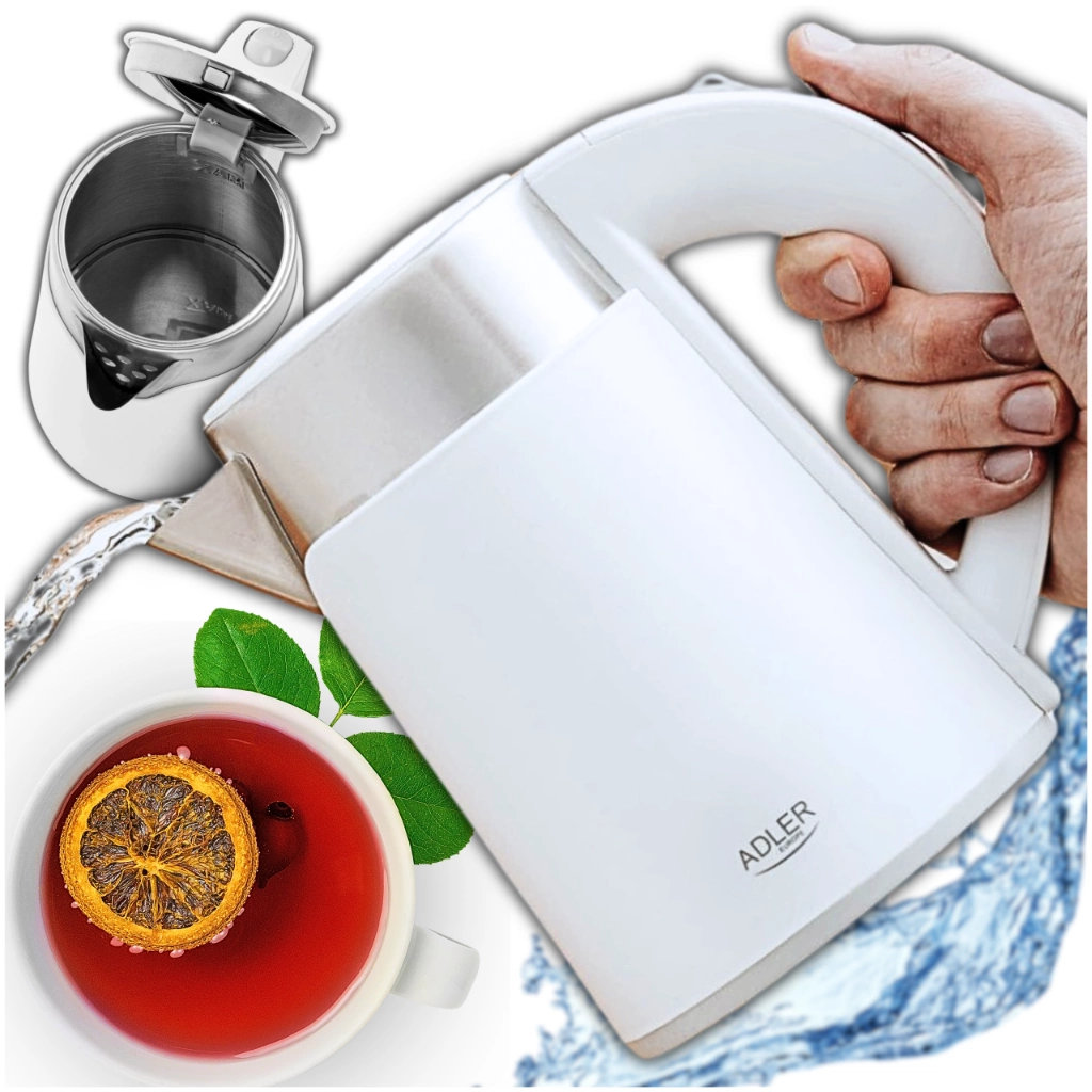 Czajnik elektryczny 800W, 0.6L, podwójna ścianka, płaska grzałka Adler AD 1372