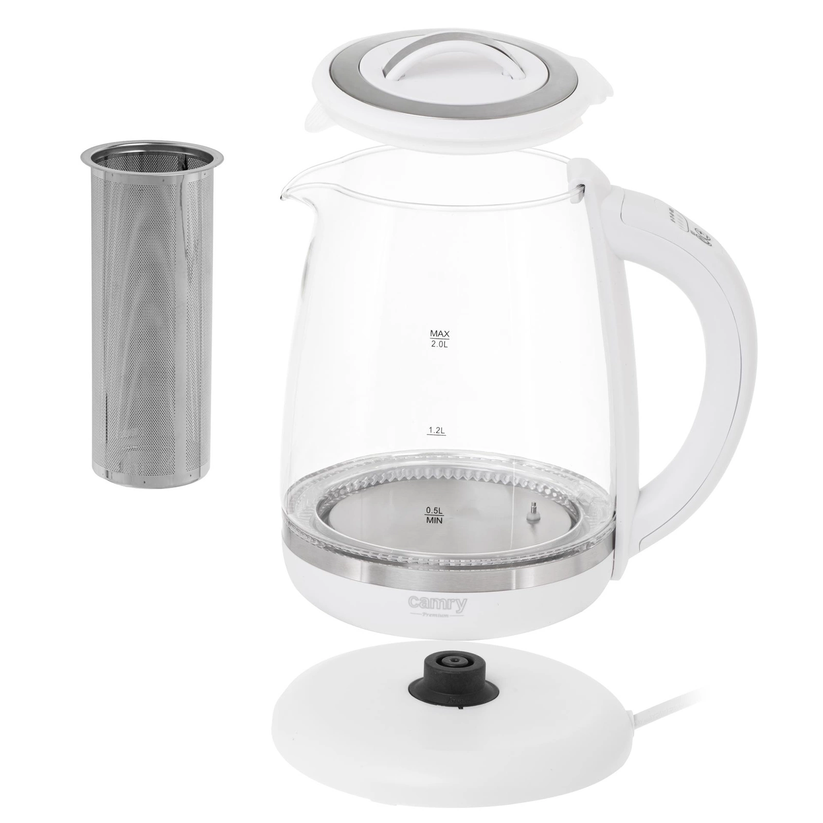 Czajnik szklany z zaparzaczem, regulacja temperatury, LED Camry CR 1290