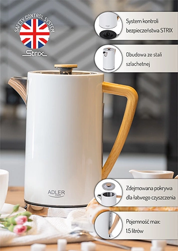 Czajnik Elektryczny Metalowy 1,7L Biały z Systemem STRIX Adler AD 1347