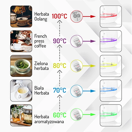 Stylowy i funkcjonalny czajnik szklany z regulacją temperatury to doskonały wybór dla każdego domu. Pozwala precyzyjnie dobrać temperaturę wody w zakresie od 60 do 100°C, co czyni go idealnym do parzenia zielonej herbaty, kawy, ziół i innych napojów wymagających odpowiedniego przygotowania.