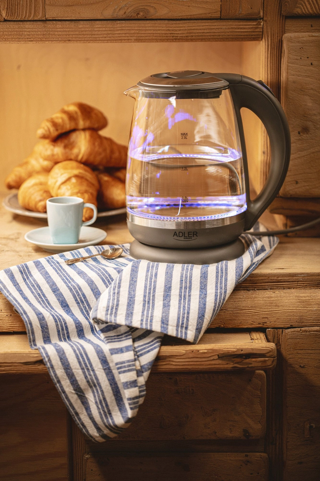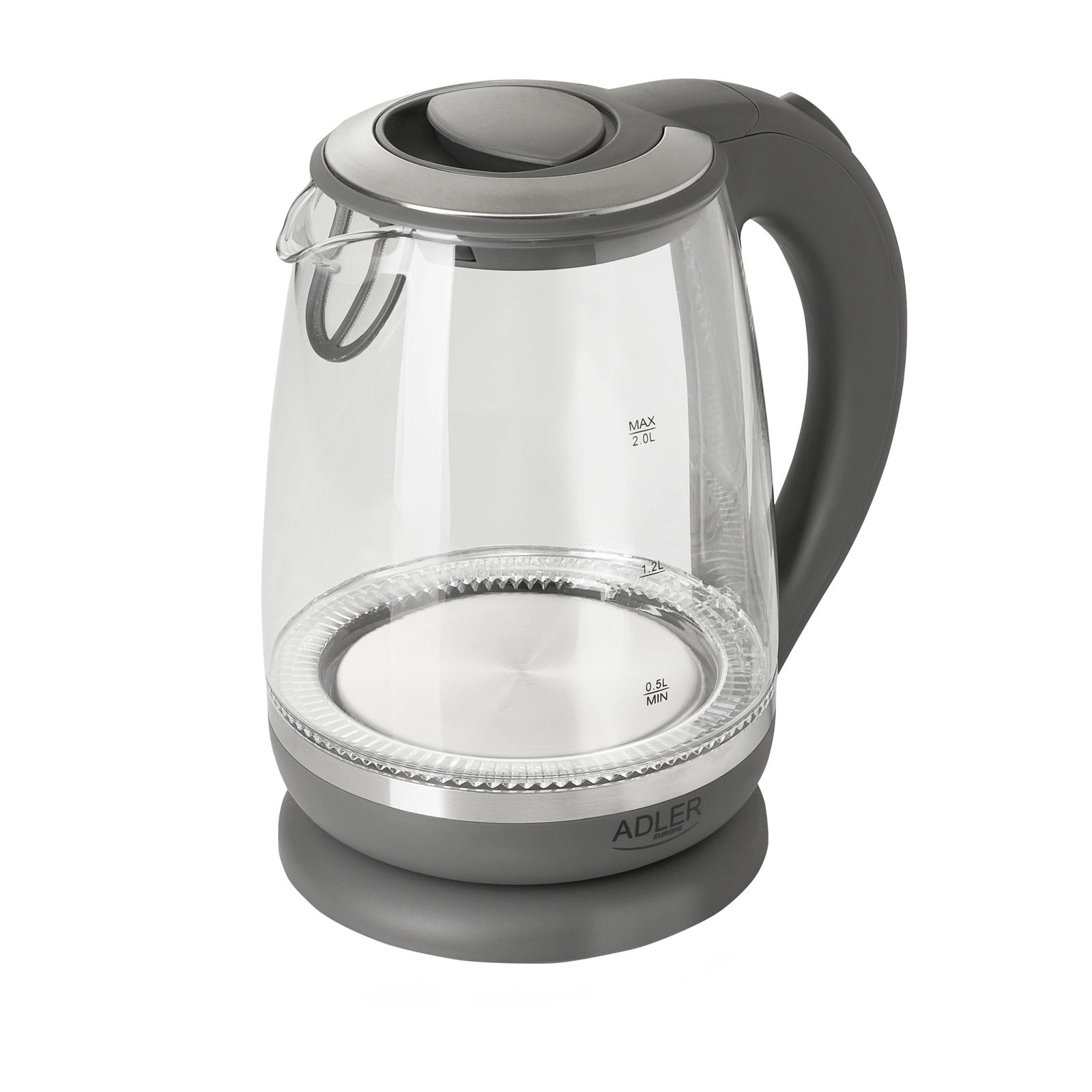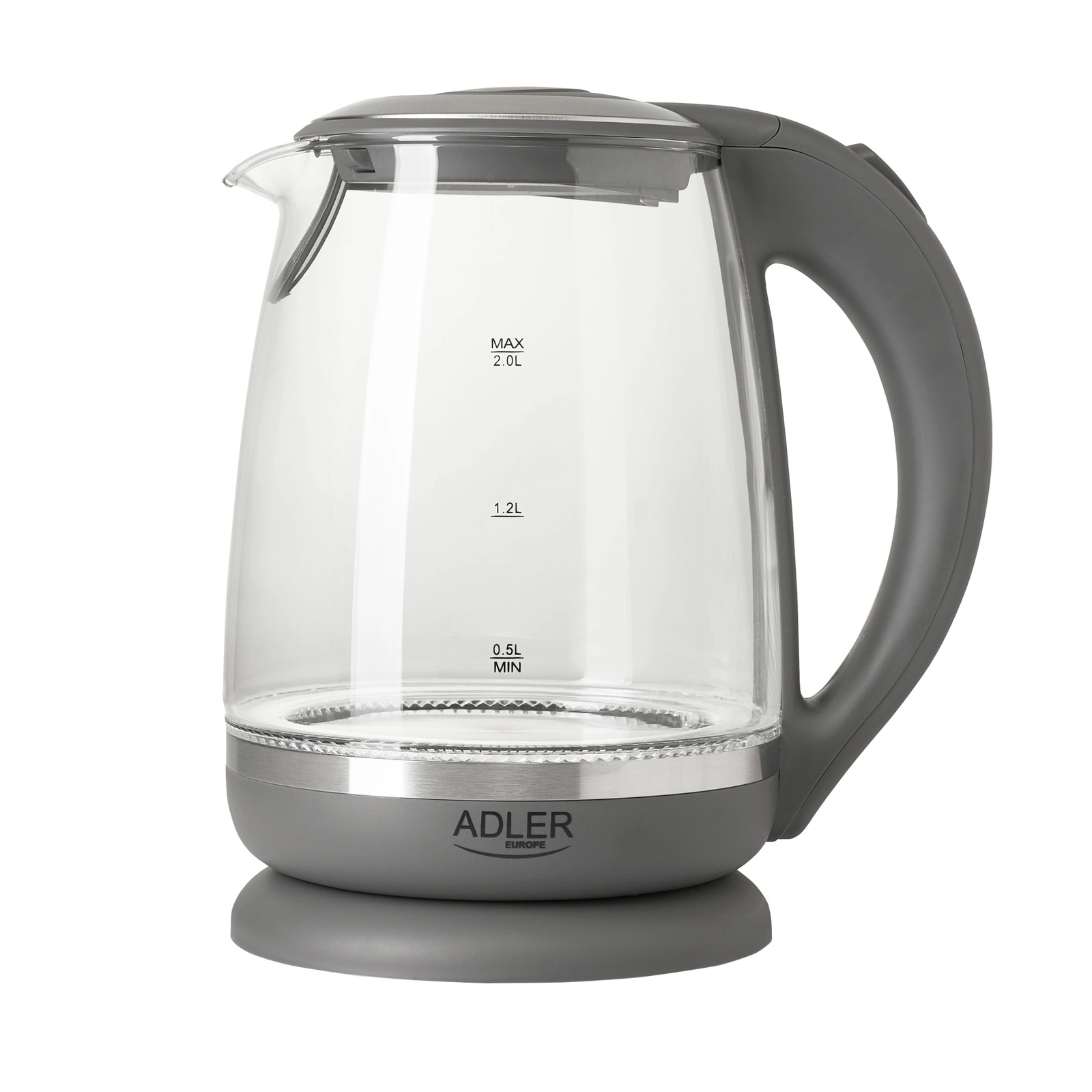 Czajnik elektryczny szklany 2.0L, 2200W, podświetlenie LED, płaska grzałka Adler AD 1286
