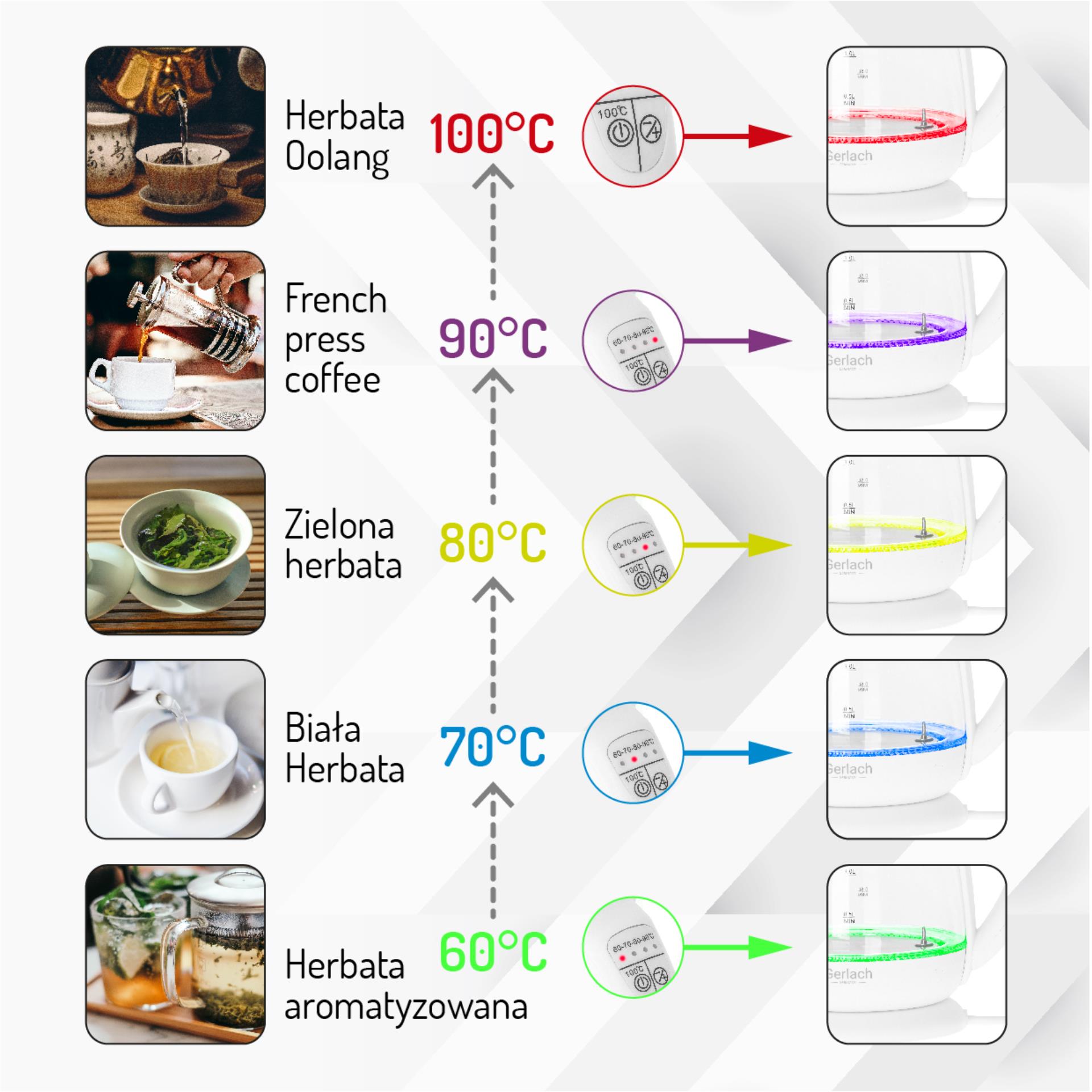 ✅Różne kolory podświetlenia gotowanej wody w zależności od wybranej temperatury