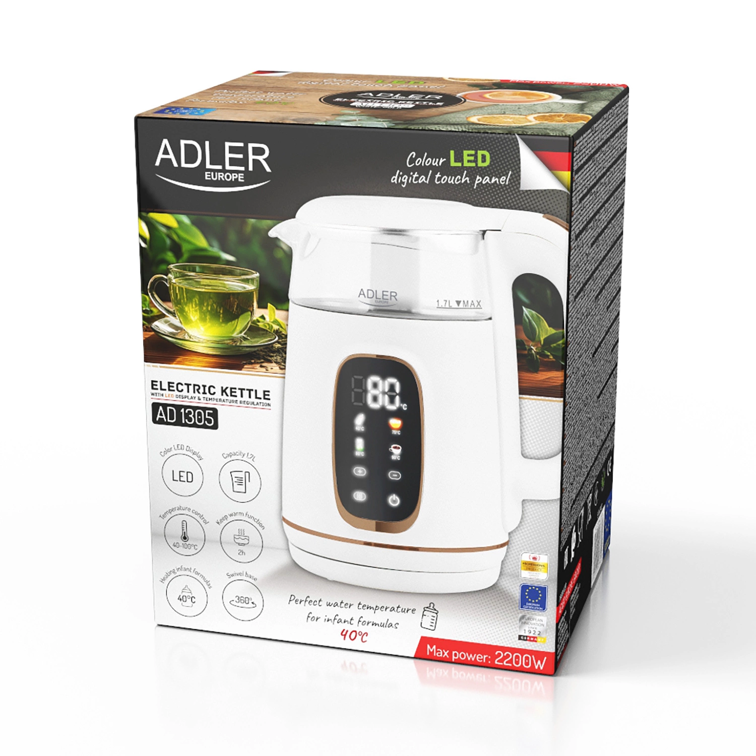 Czajnik elektryczny z regulacją temperatury, szklany, 1.7L 2200W Adler AD 1305 wg