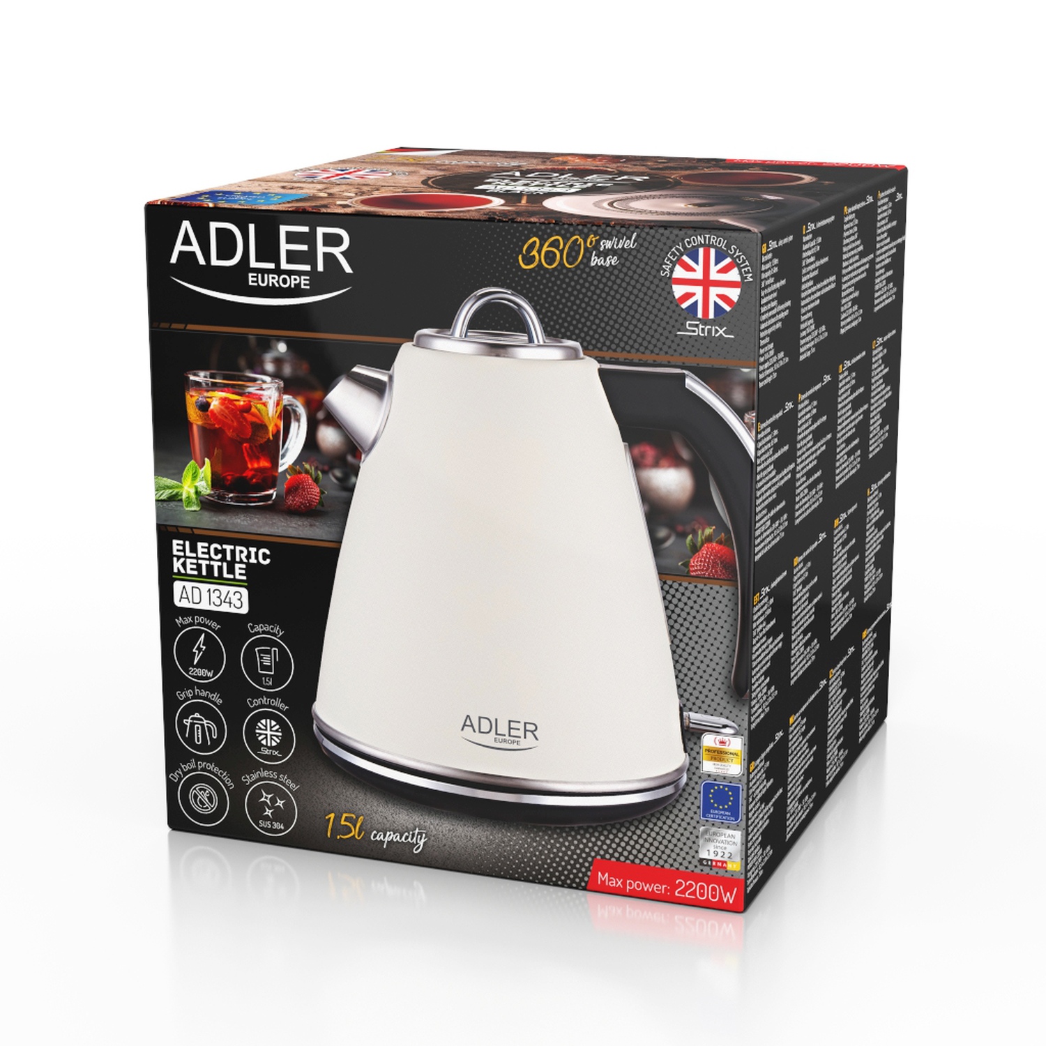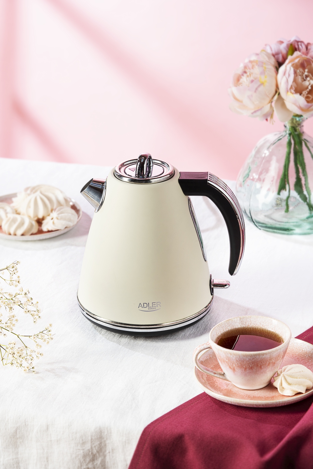 Czajnik metalowy 1,5 L z technologią STRIX, kremowy - Adler AD 1343