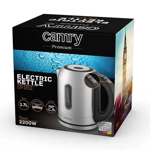 Czajnik Metalowy 1,7 L z Regulacją Temperatury Camry CR 1253 – Precyzja, Styl i Moc 2200W!