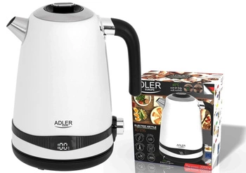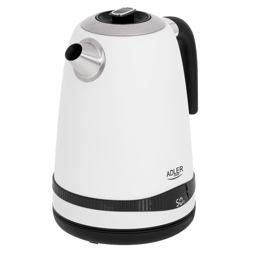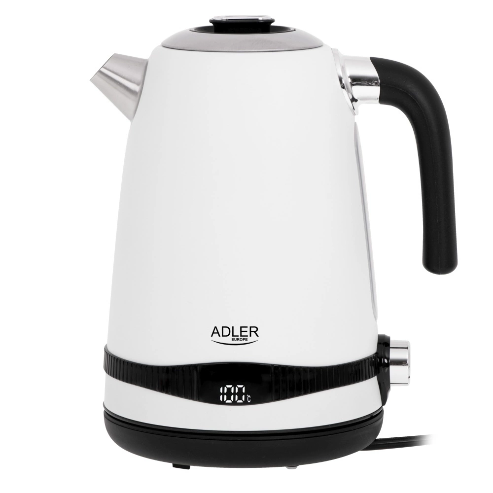 Czajnik metalowy 1,7L z regulacją temperatury i LCD, biały - Adler AD 1295