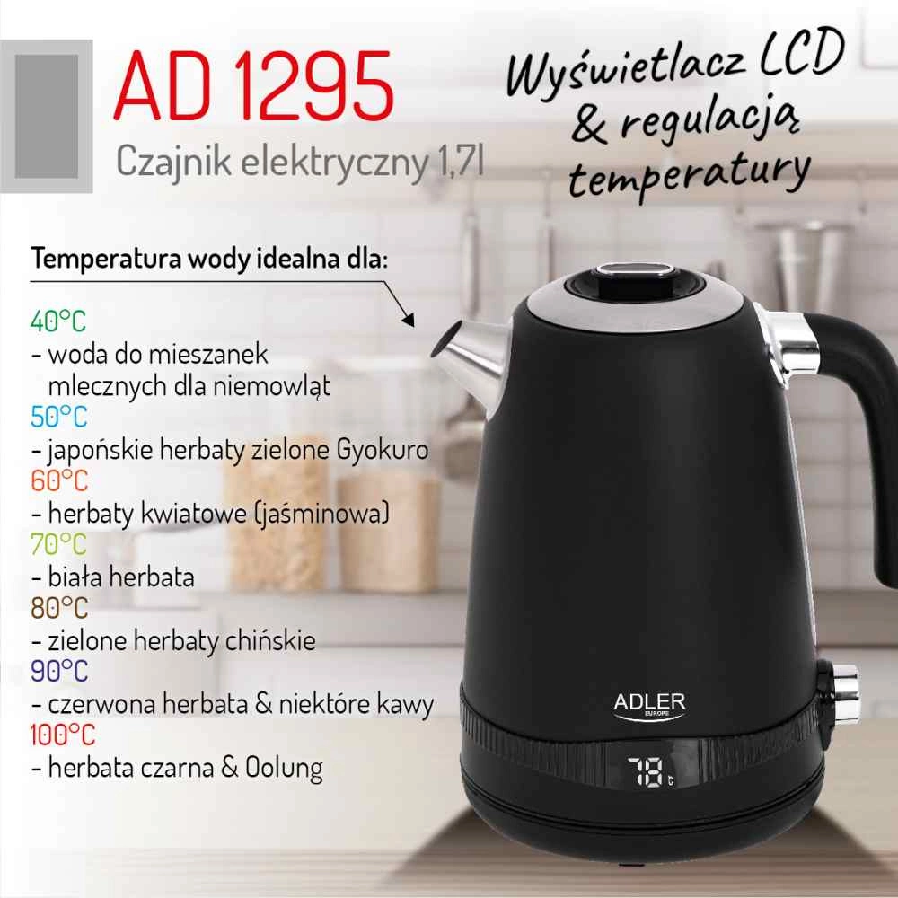 Czajnik metalowy z LCD i regulacją temperatury 1,7L - Adler AD 1295