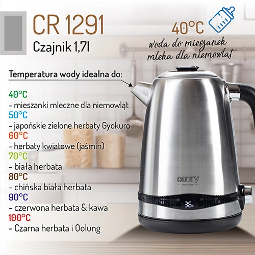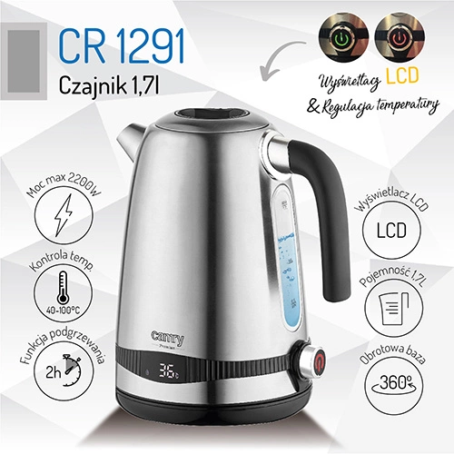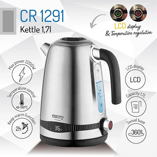Camry CR 1291 Czajnik metalowy 1,7L z LCD & regulacja temp.
