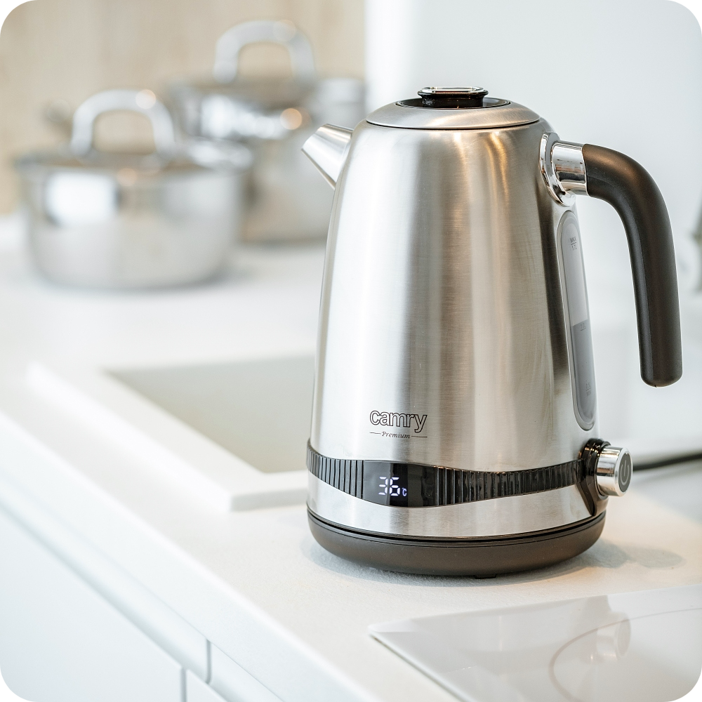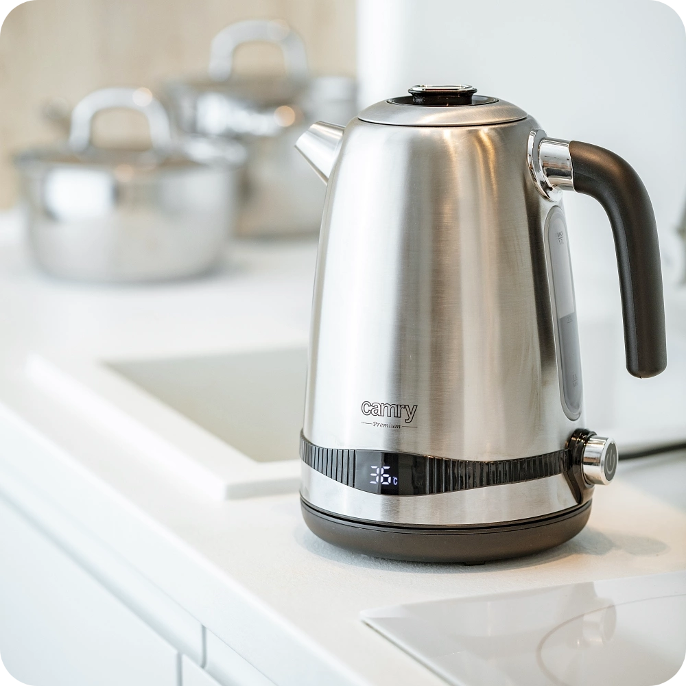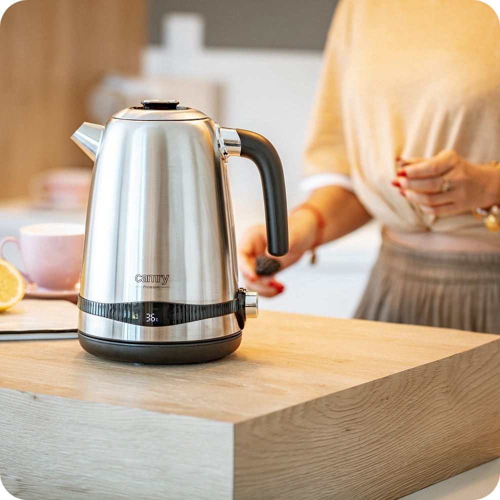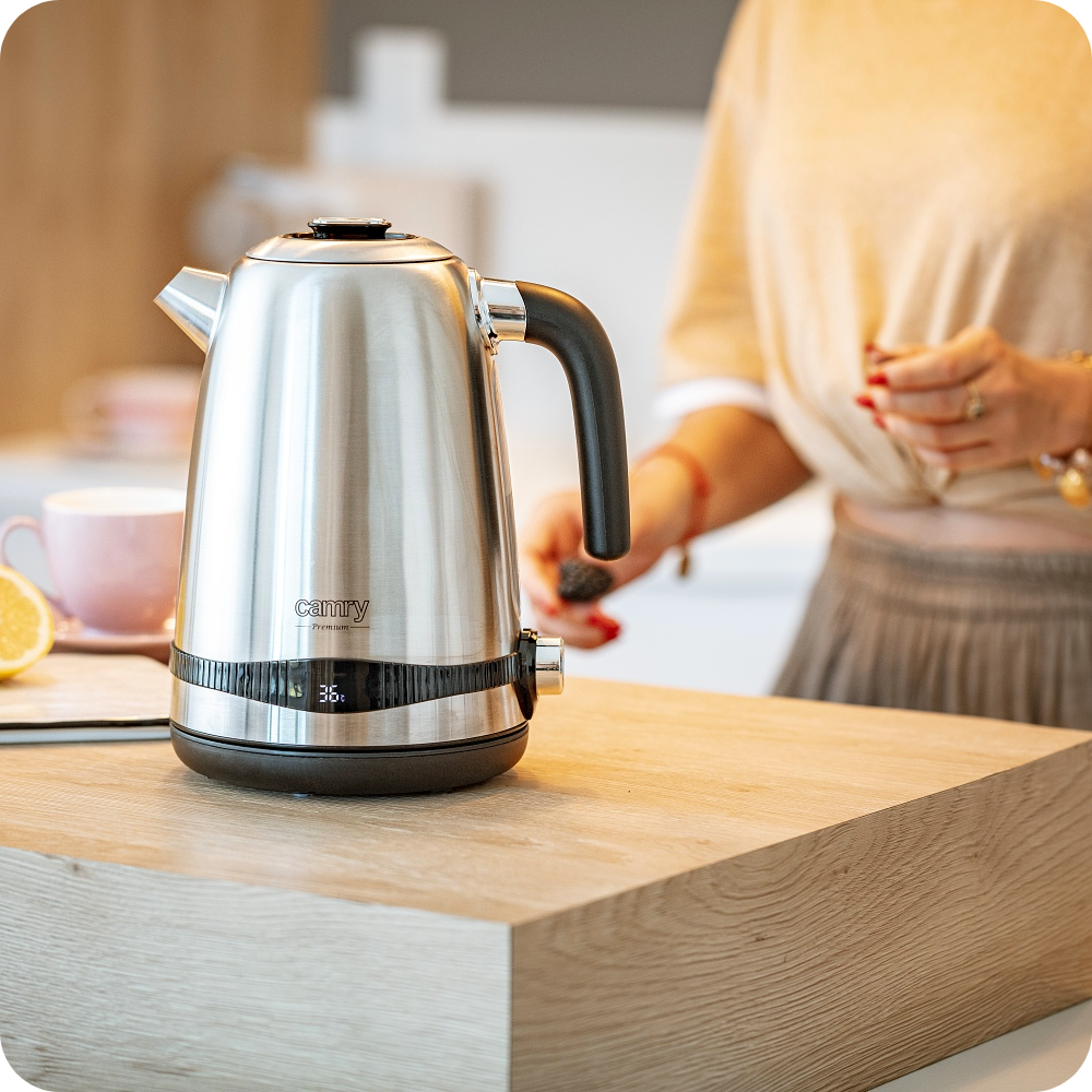 Czajnik Metalowy z LCD, Regulacją Temperatury - 1,7L Camry CR 1291