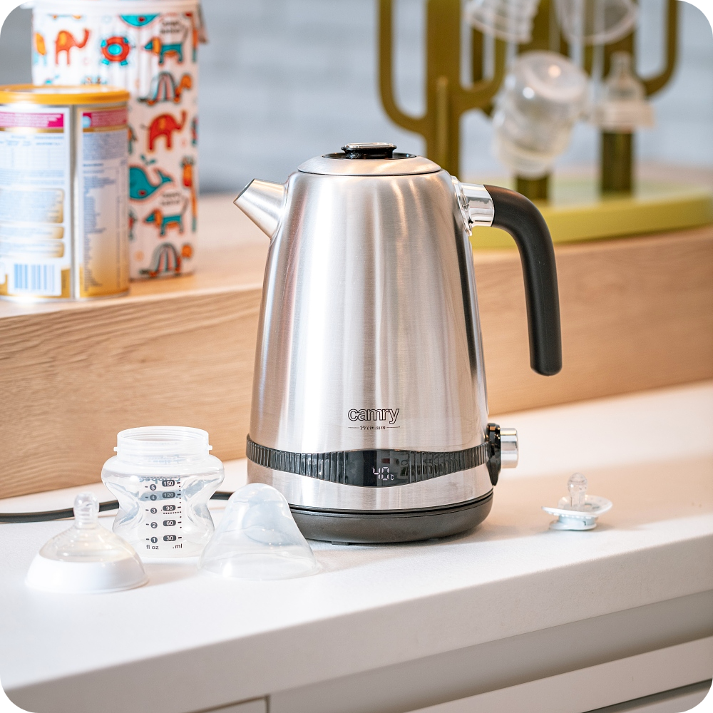 ❇️Czajnik Camry CR 1291 to urządzenie stworzone z myślą o najwyższych standardach. Oferuje 7-stopniową regulację temperatury, umożliwiającą dopasowanie jej do każdego napoju. Pozwala na szybkie przygotowanie mieszanek mlecznych dla maluchów, jest więc idealnym rozwiązaniem dla mam. Czajnik wykonany jest z wysokiej jakości stali nierdzewnej, co gwarantuje długotrwałe korzystanie z urządzenia. Wyposażony jest w filtr antywapienny oraz zabezpieczenie przed przegrzaniem. W celu łatwego umycia, model Camry CR1291 ma całkowicie odejmowaną pokrywkę bez zawiasów.