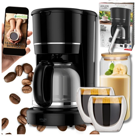 Ekspres do kawy przelewowy 900W szklany dzbanek 1,5L z podgrzewana podstawa Adler AD 4383b