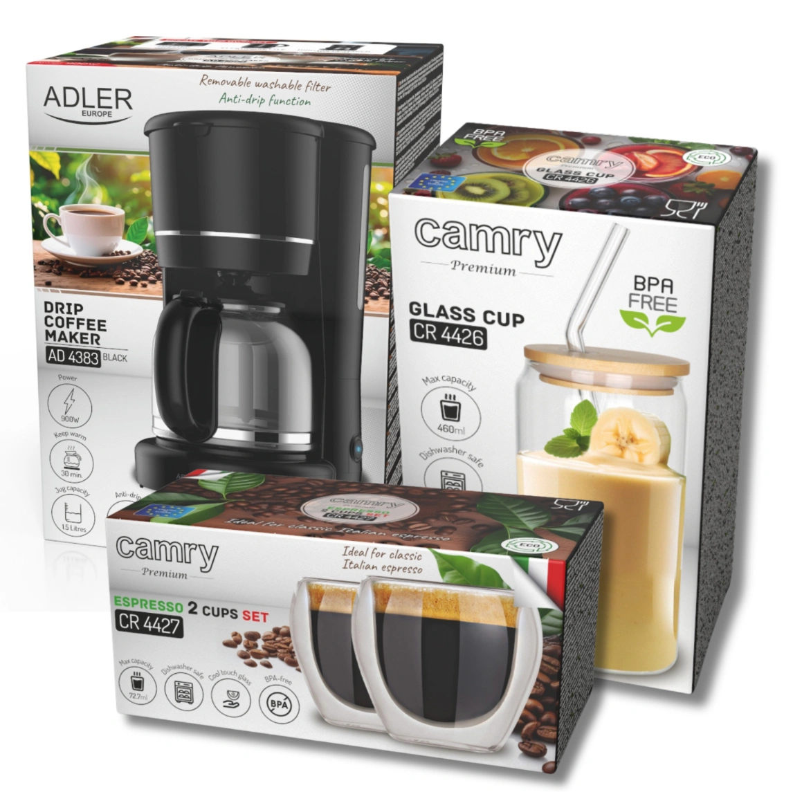 Ekspres Przelewowy Adler AD 4383 z Pełnym Zestawem Baristy: Kawa dla Każdego, Zawsze pod Ręką!