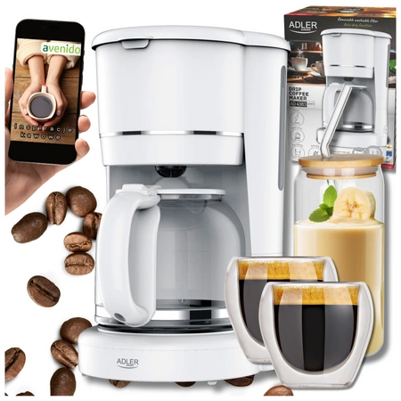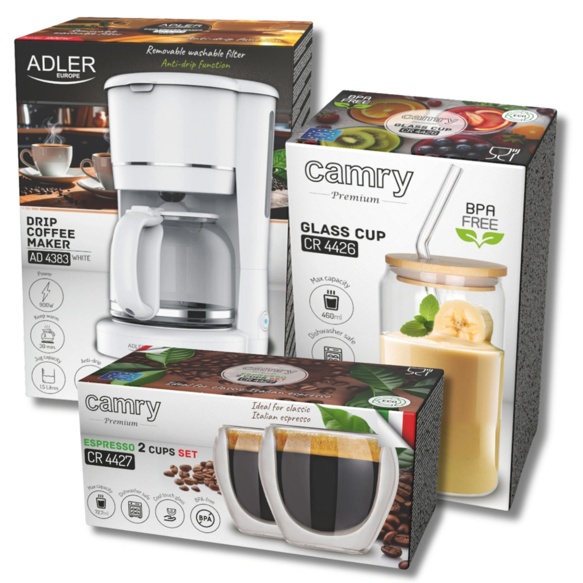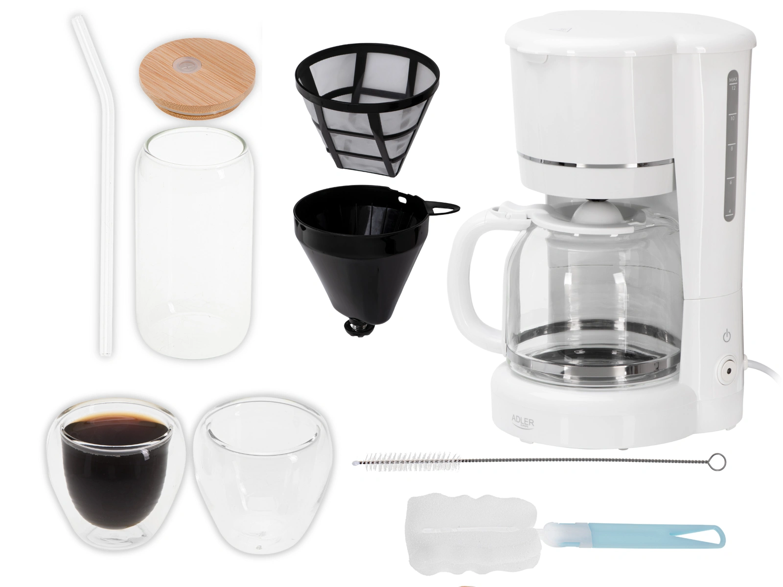 Ekspres przelewowy Adler AD 4383: Aromat doskonałej kawy w Twoim domu ☕ + Zestaw 2 filiżanek do espresso i szklany kubek z pokrywą!