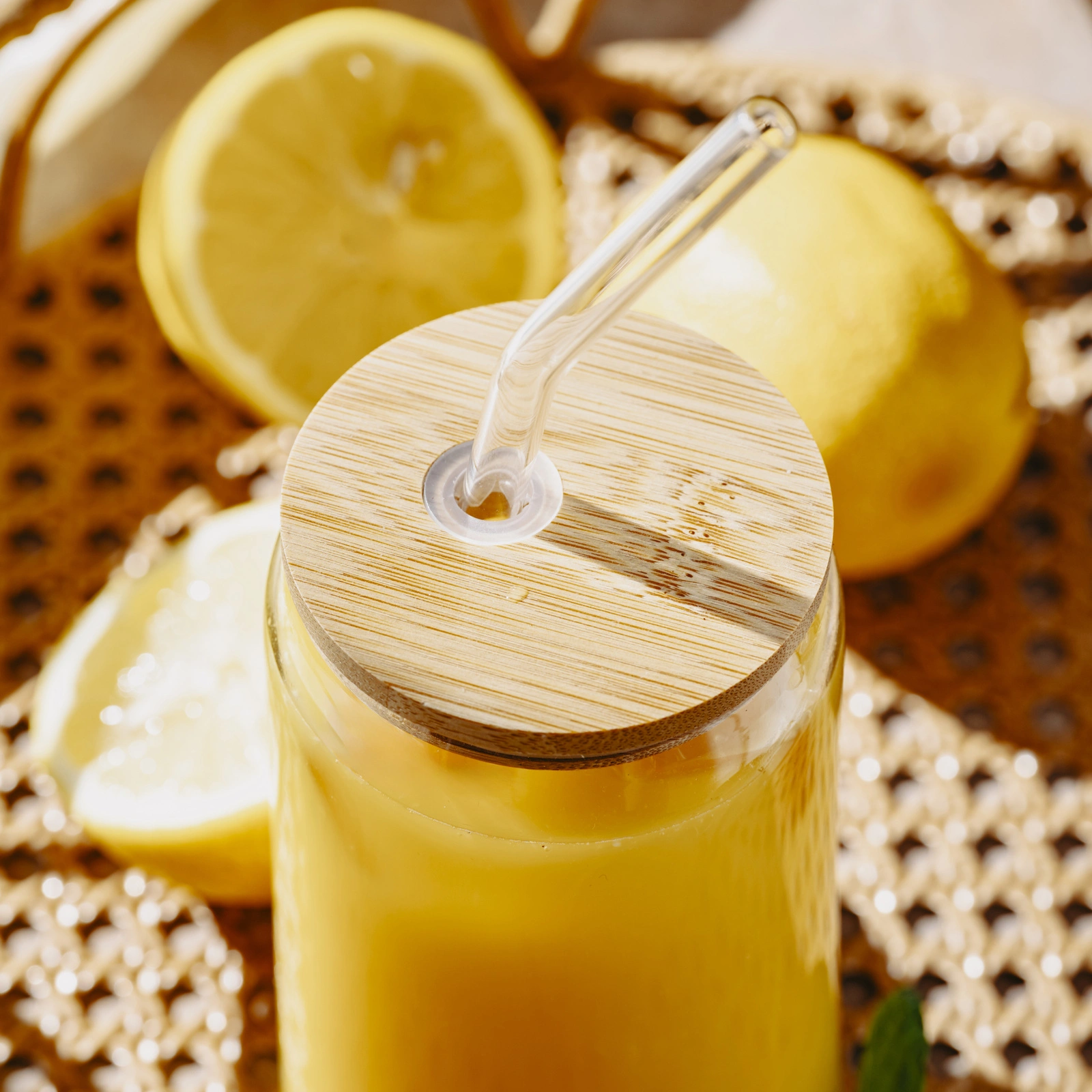✅ W zestawie szklany kubek 460 ml z bambusową pokrywką i słomką