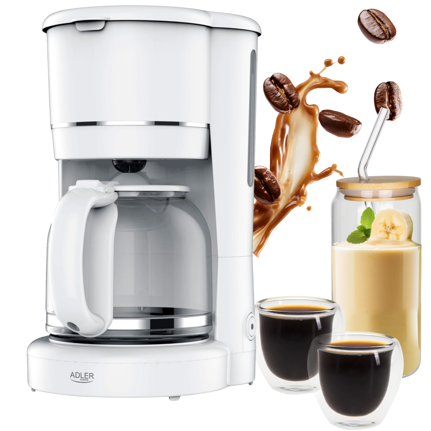 Ekspres do kawy przelewowy 900W szklany dzbanek 1,5L z podgrzewana podstawa Adler AD 4383w