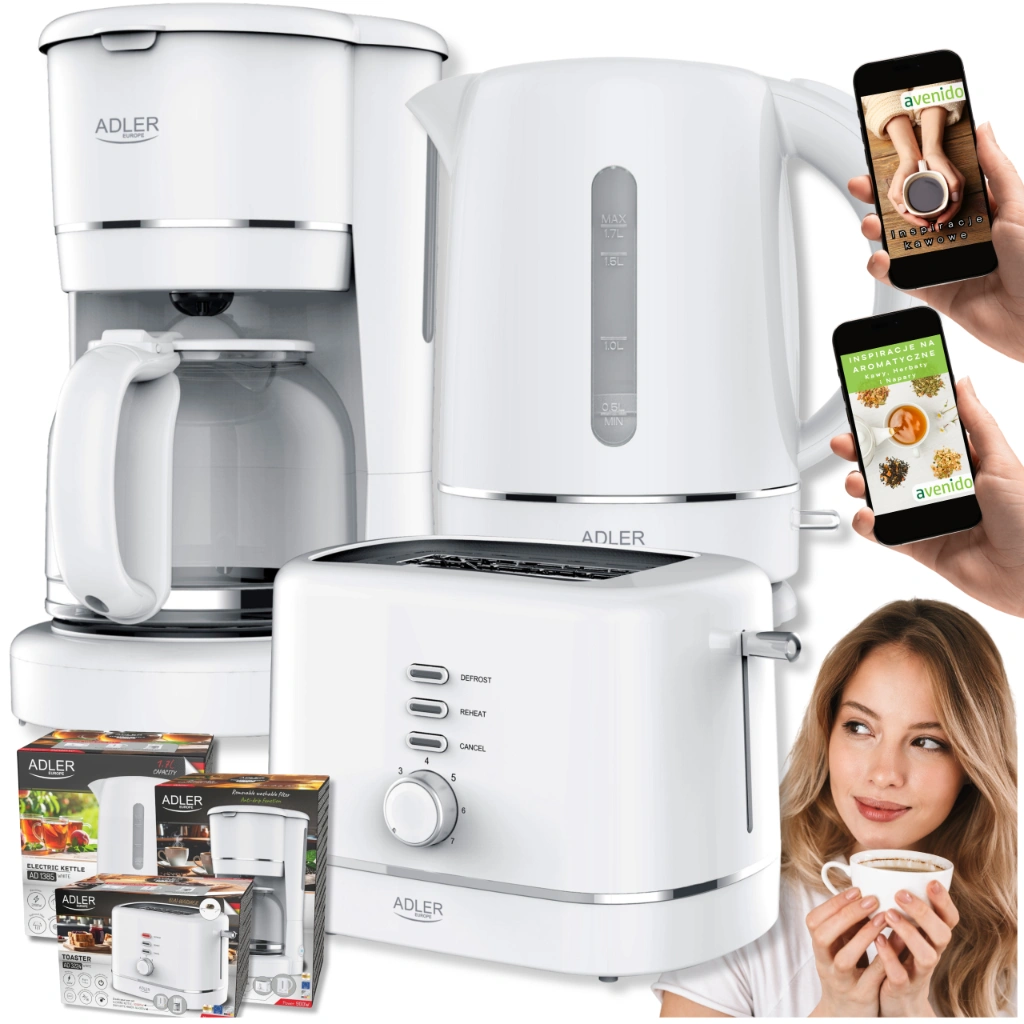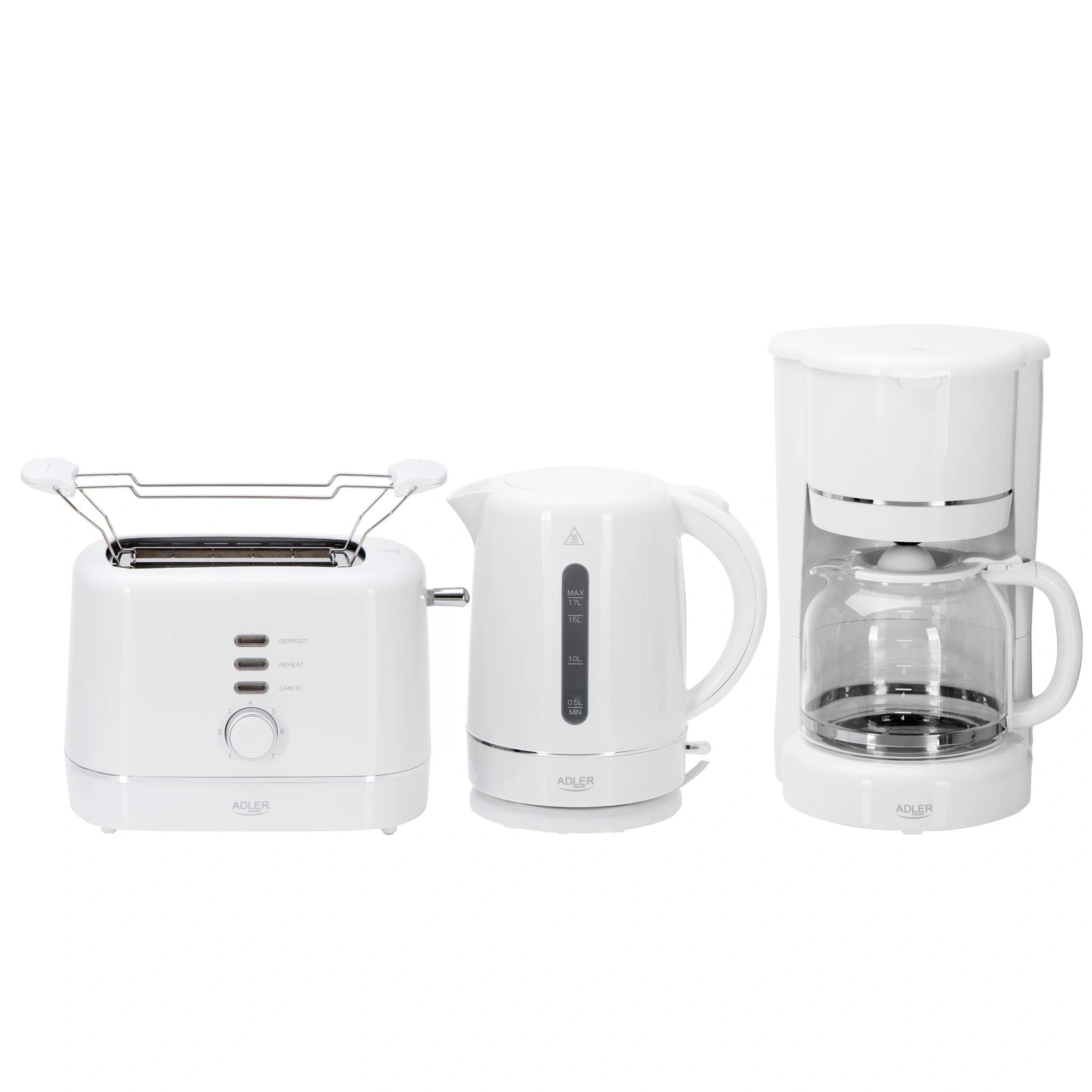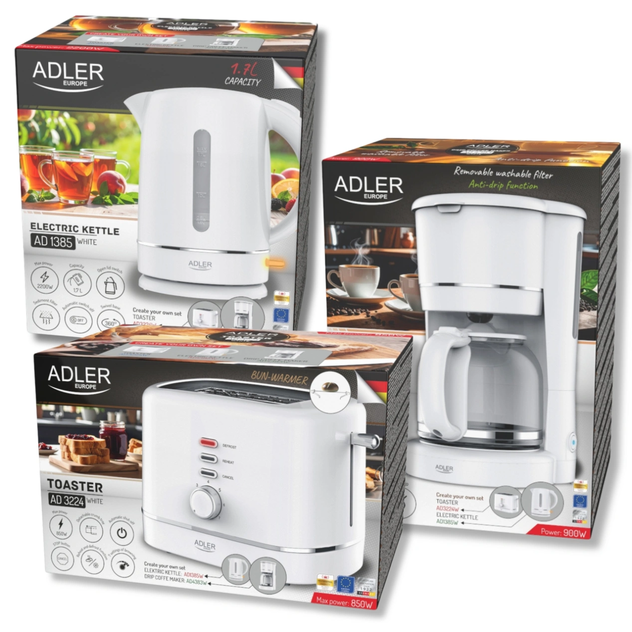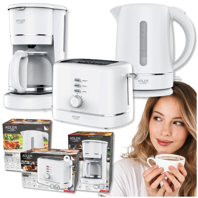 Elegancki Biały Zestaw Kuchenny Adler: Ekspres, Czajnik, Toster – Styl i Funkcjonalność w Jednym!