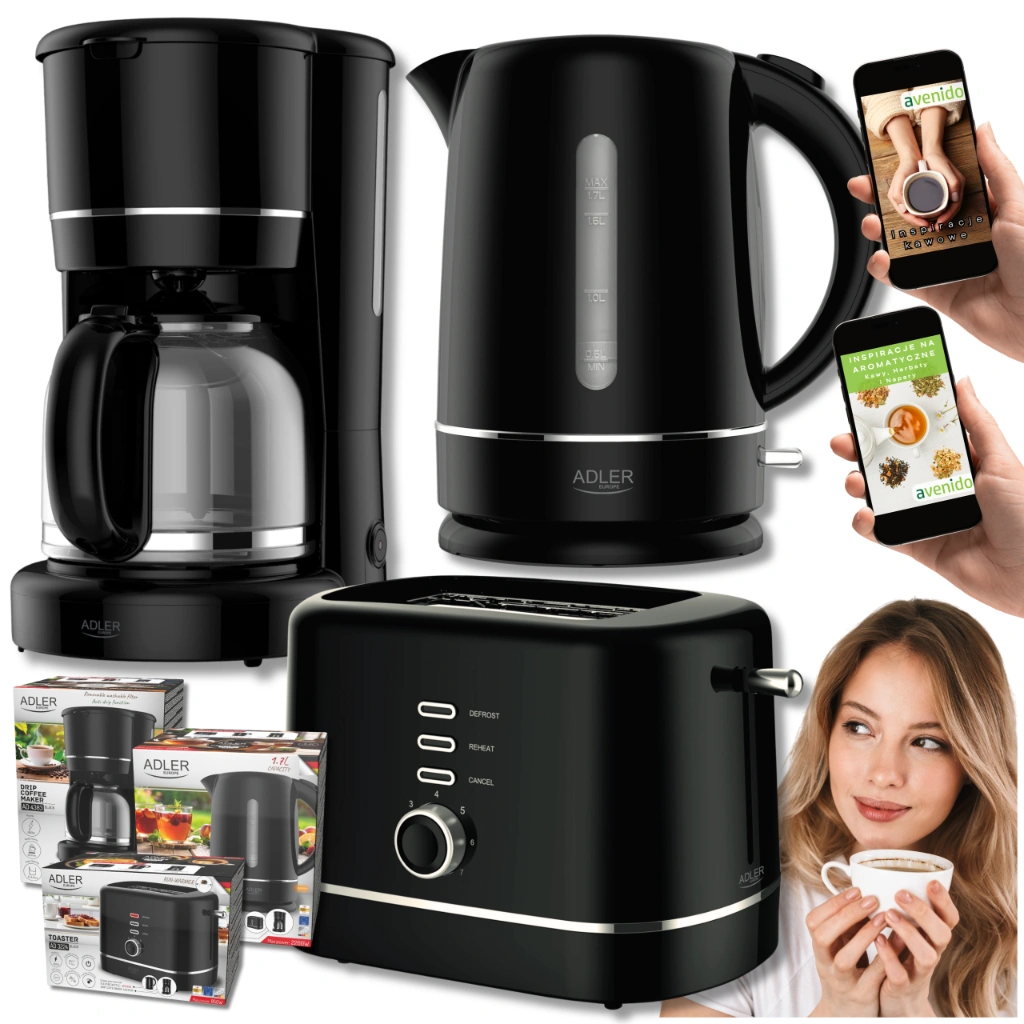 Ekspres przelewowy do kawy + toster + czajnik elektryczny Adler