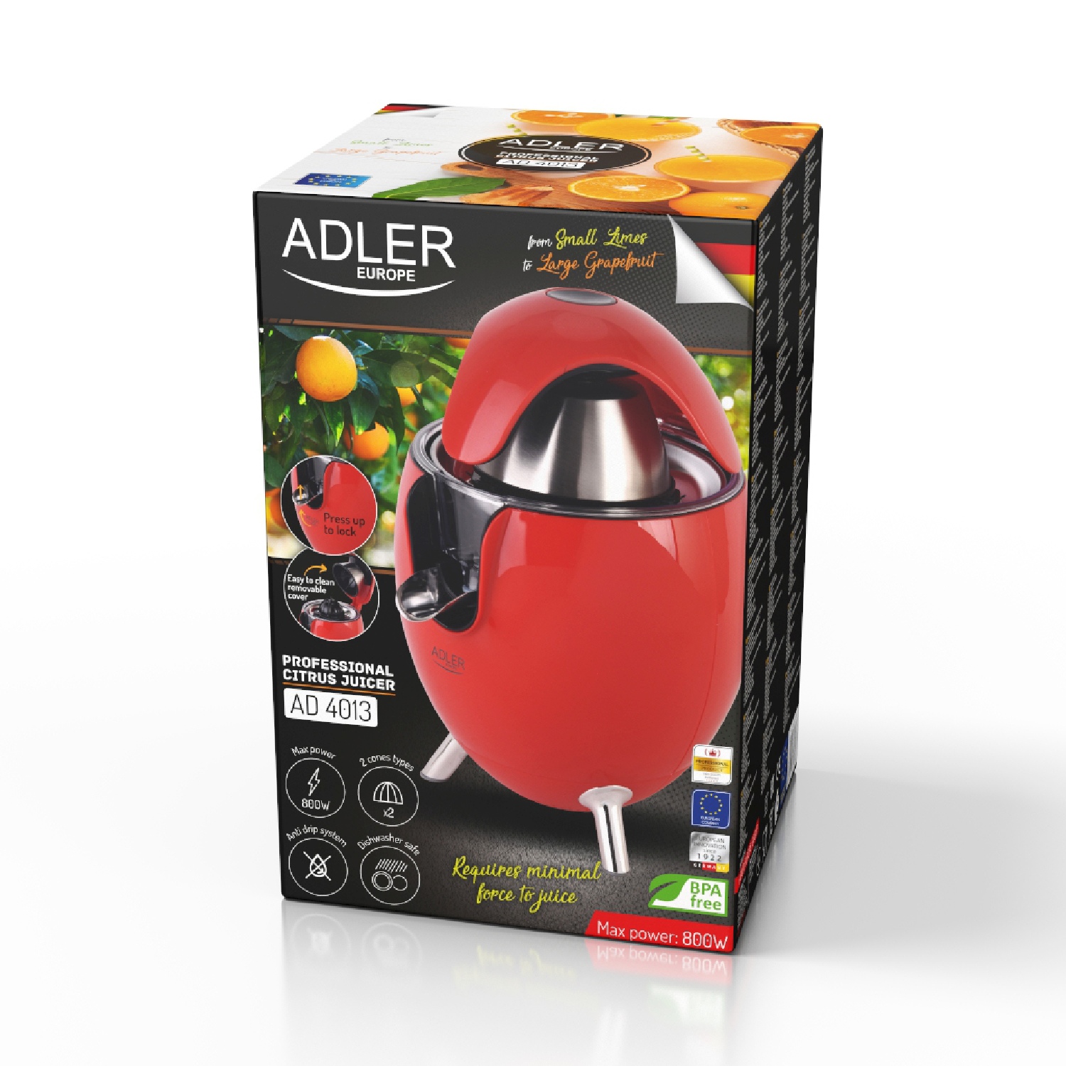 ✔️Estetyczna wyciskarka do cytrusów Adler 4013 o mocy 800 W.