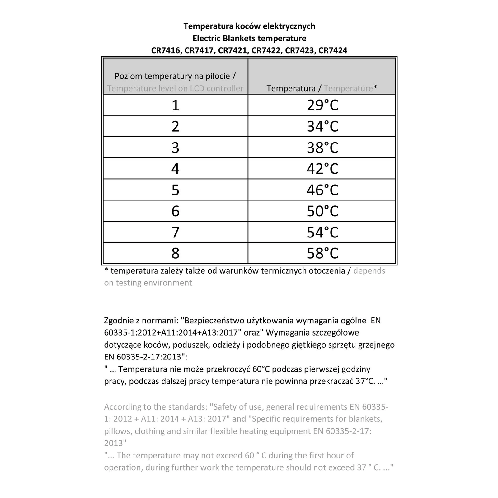 Kliknij i zamów elektryczny koc podkładowy Camry CR 7417 już dziś!