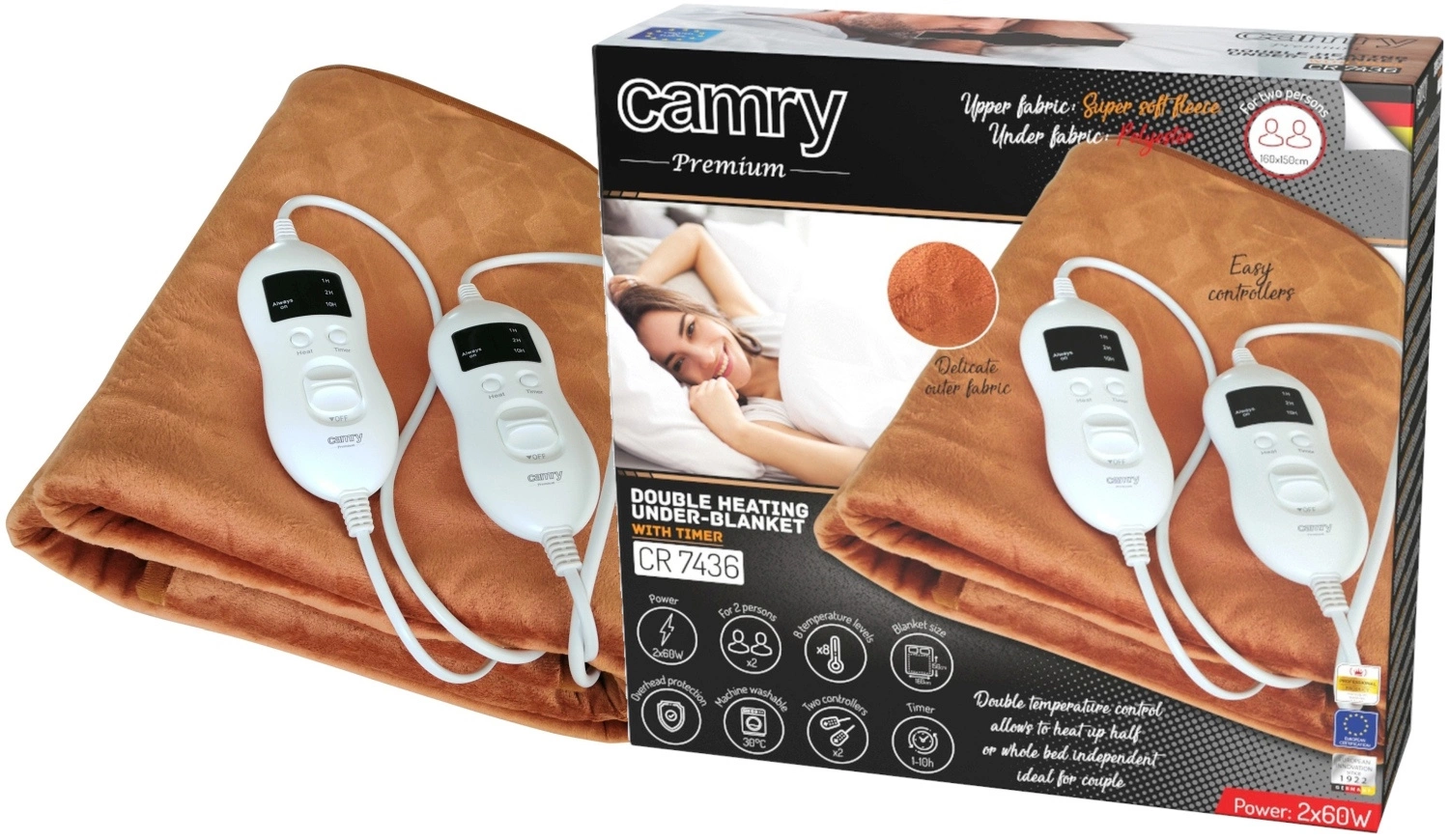 Model CR 7436 Camry to idealny wybór dla par, które cenią sobie ciepło, komfort i zdrowie podczas snu czy relaksu. Jego funkcjonalność, łatwość w utrzymaniu czystości i zaawansowane systemy bezpieczeństwa sprawiają, że stanie się ulubionym elementem Twojej sypialni.