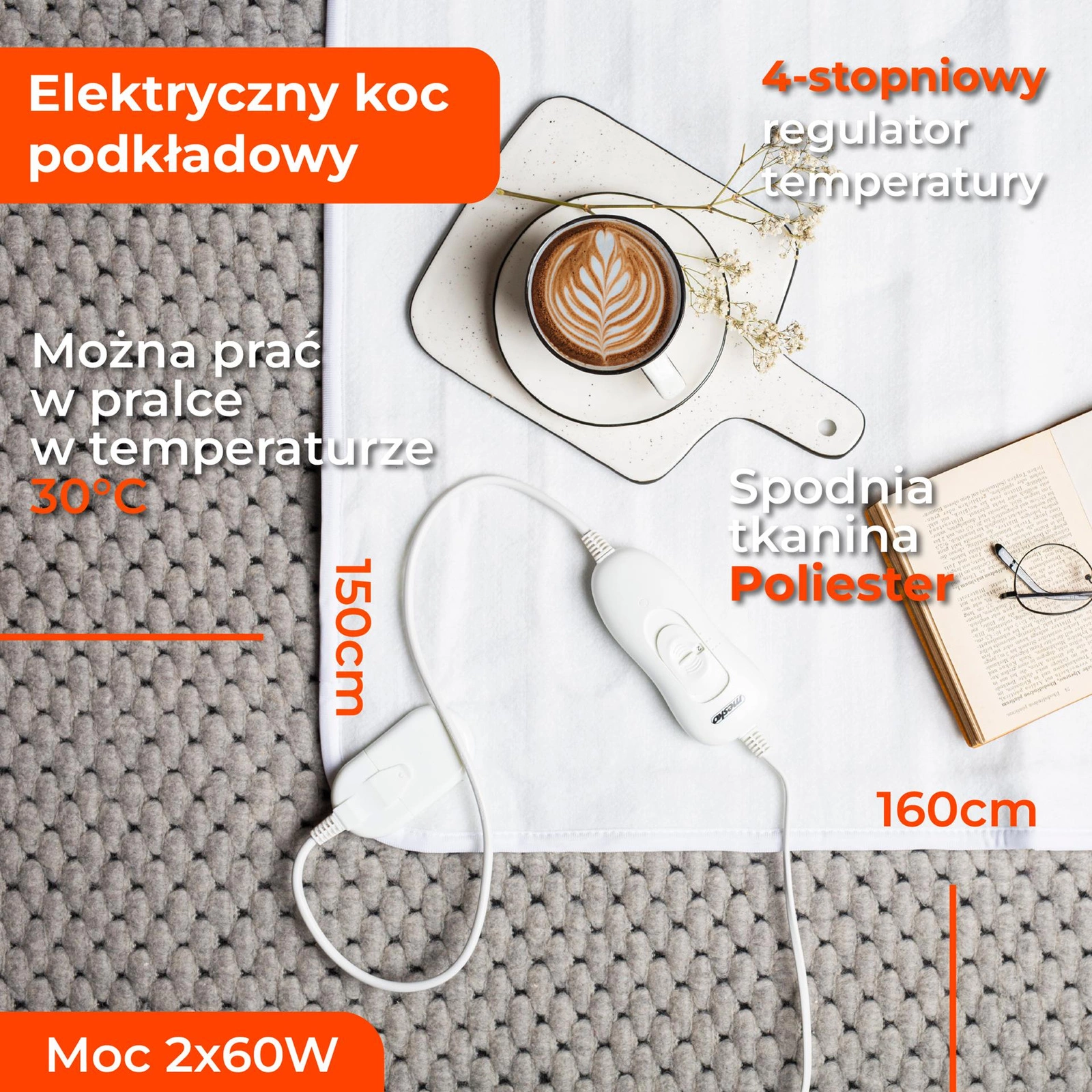 Elektryczny Koc Podkładowy z Regulacją Ciepła, Lekki i Bezpieczny - Mesko MS 7420