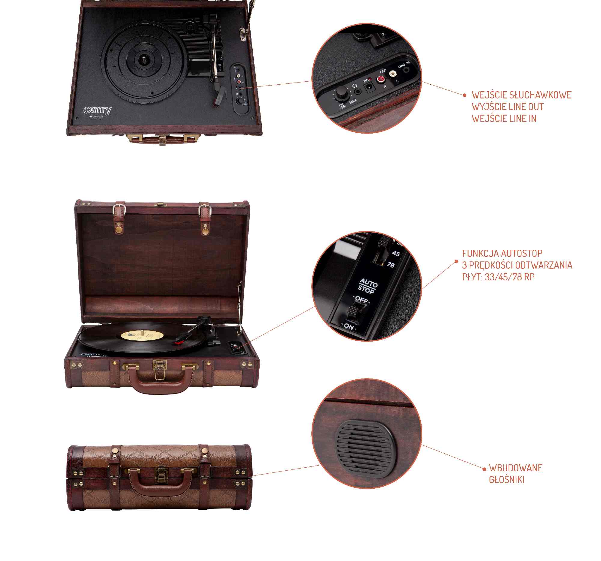 Gramofon Walizkowy Retro z Wbudowanymi Głośnikami, Przenośny, Camry CR 1149