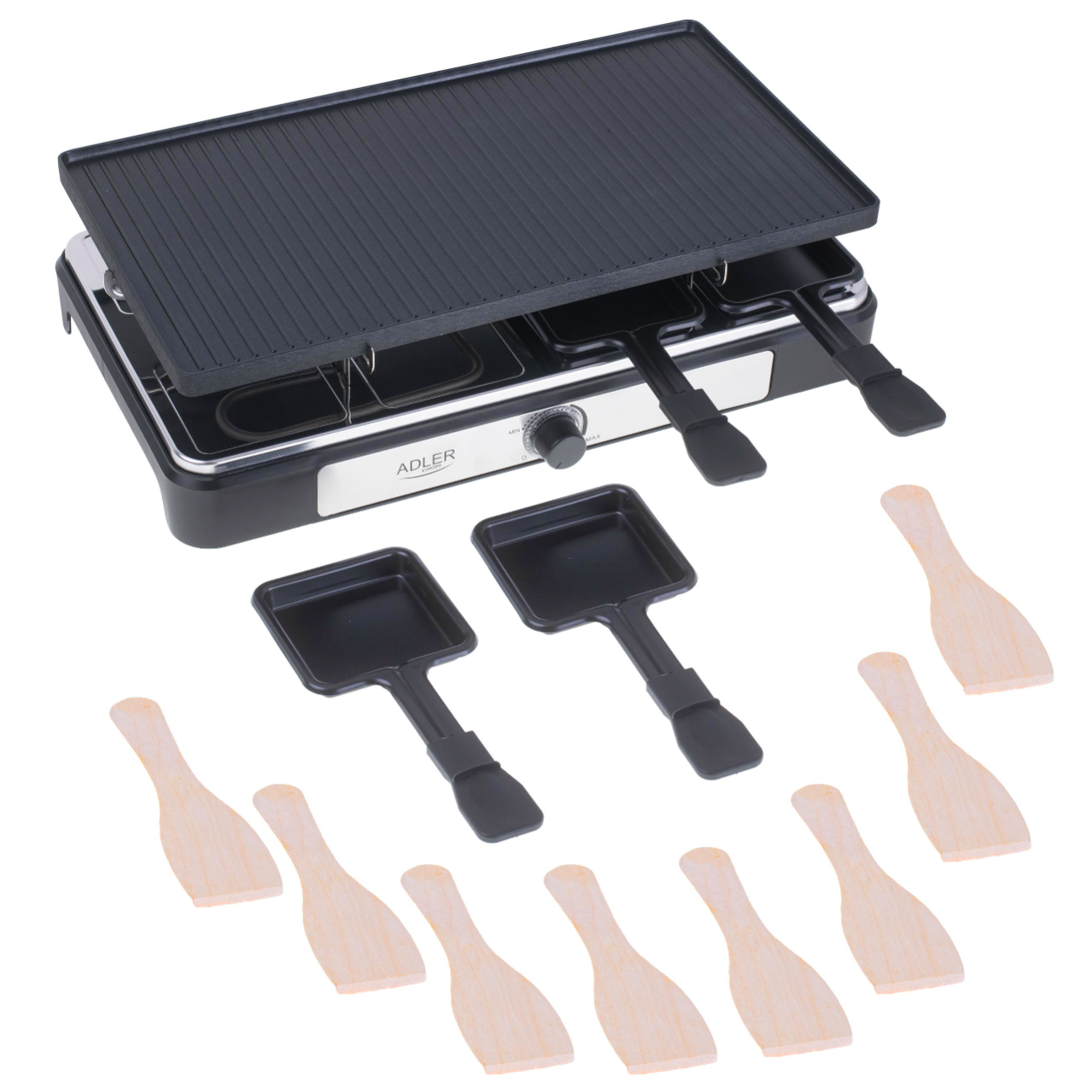 Grill Elektryczny Raclette z Regulacją Temperatury, 1500W, Nietoksyczne Powłoki - Adler AD 6616
