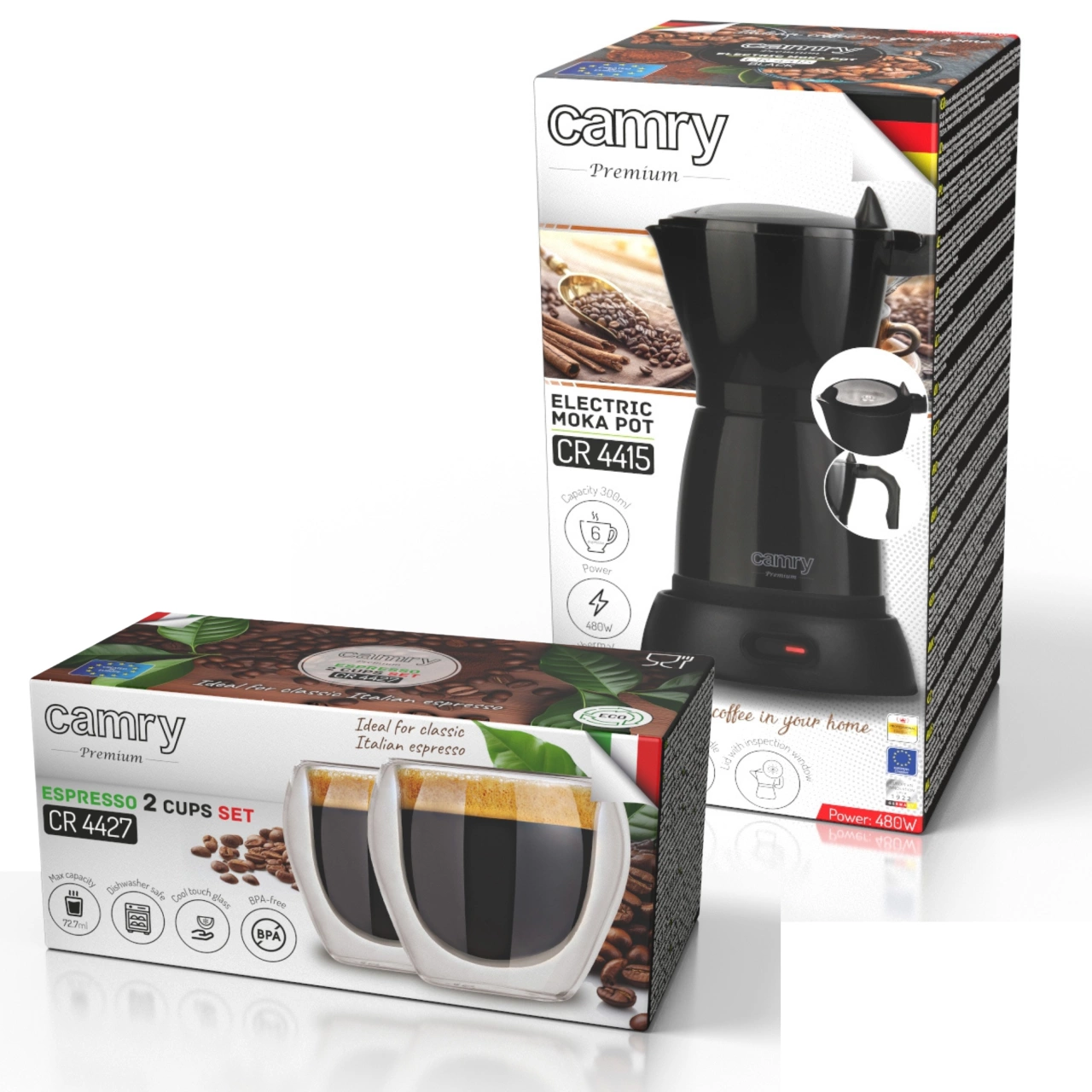 Kawiarka Camry + szklanki CR4415B-CR4427