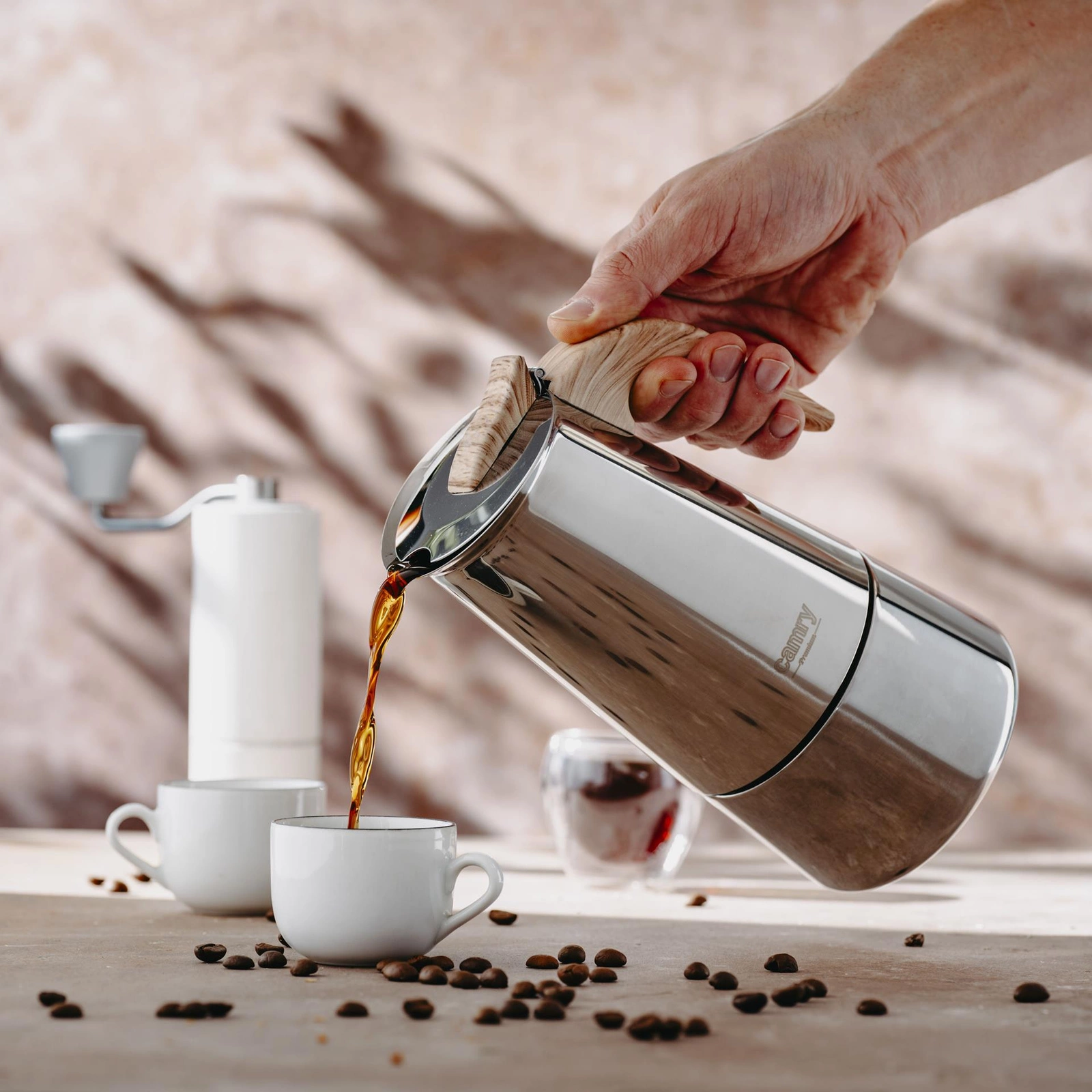 - Nie rozlewa się przy nalewaniu: Dzięki starannemu wykonaniu i ergonomicznemu kształtowi, kawiarka Camry nie rozlewa się podczas nalewania, co sprawia, że proces przygotowywania espresso jest wygodny i bezproblemowy.
