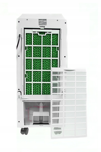 Klimator ma wbudowany 8L zbiornik na wodę, dzięki któremu może wydajnie nawilżać powietrze nawet przez 7,5 godziny. Dla wygody do zestawu dołączany jest pilot pozwalający na zdalne sterowanie klimatyzatorem.