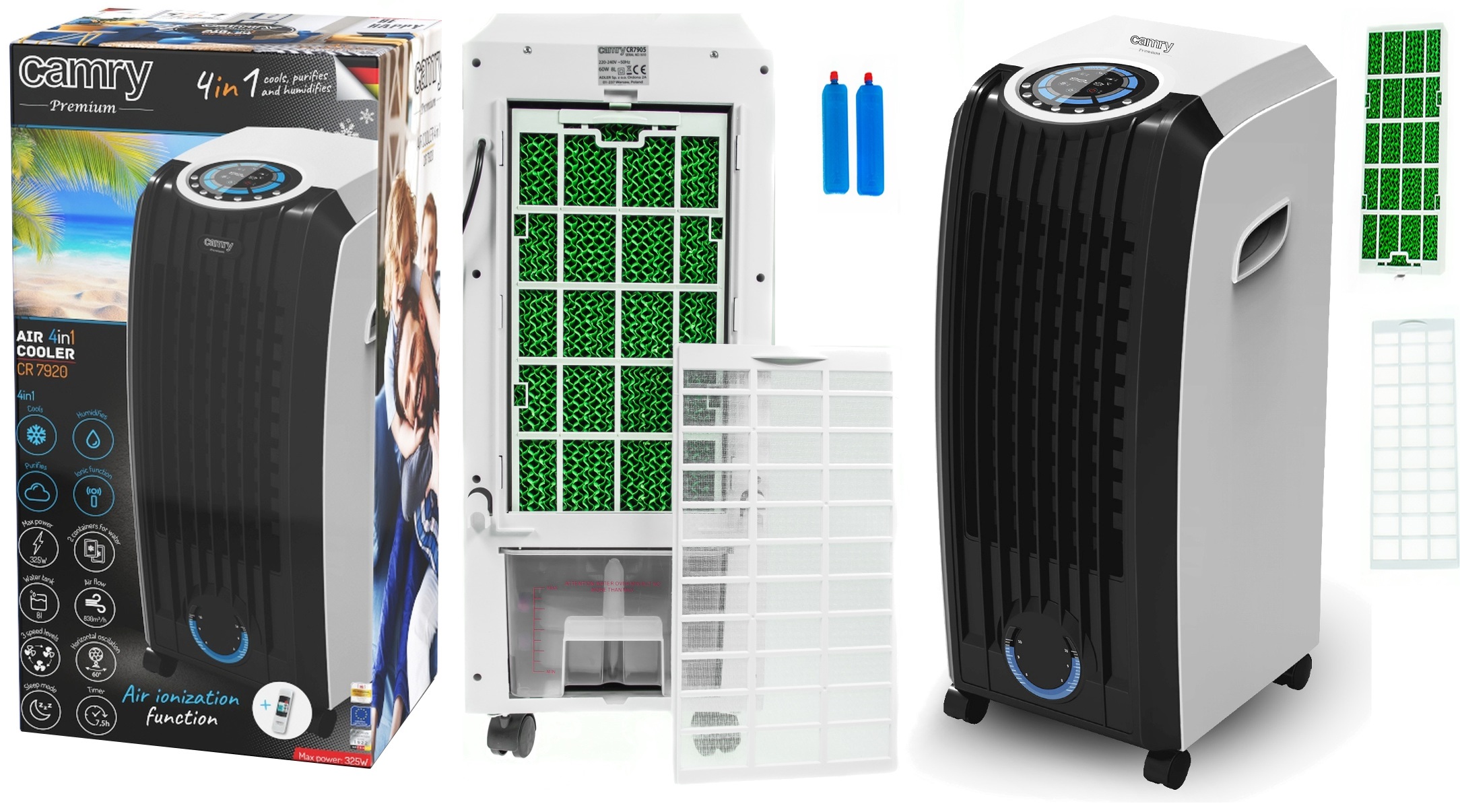 Lubisz, gdy w sypialni, salonie lub biurze panuje przyjemny chłodniejszy klimat? Męczą cię wysokie temperatury latem? A może dokucza ci suche powietrze w mieszkaniu? Klimator 4 w 1 CAMRY CR 7920 to idealny produkt, jeśli szukasz urządzenia, które pozwoli szybko i wygodnie zadbać o czyste i chłodne powietrze w twoim otoczeniu. Plusem jest to, że ciekawy design nie zakłóci wystroju żadnego wnętrza!
