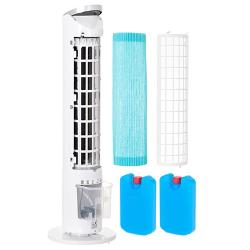 ✨Klimator ma wbudowany 2 L zbiornik na wodę, a dzięki dołączonym 2 pojemnikom z żelem, które można zamrozić w lodówce aby potem przełożyć do zbiornika z wodą, urządzenie może wydajnie chłodzić i nawilżać powietrze.