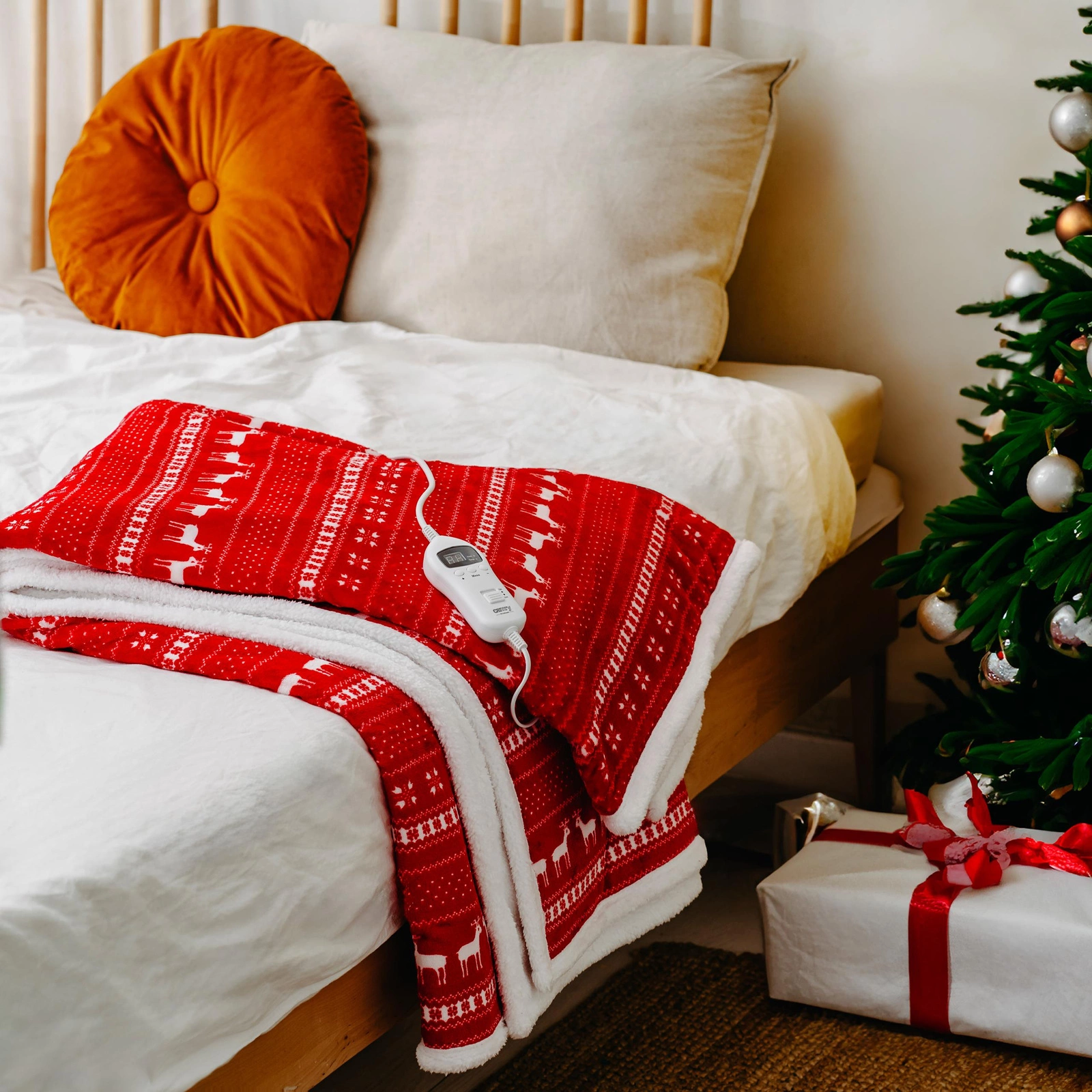 Elektryczny Koc Grzewczy z 10 Poziomami Grzania i Świątecznym Wzorem – Ciepło i Magia Świąt!
