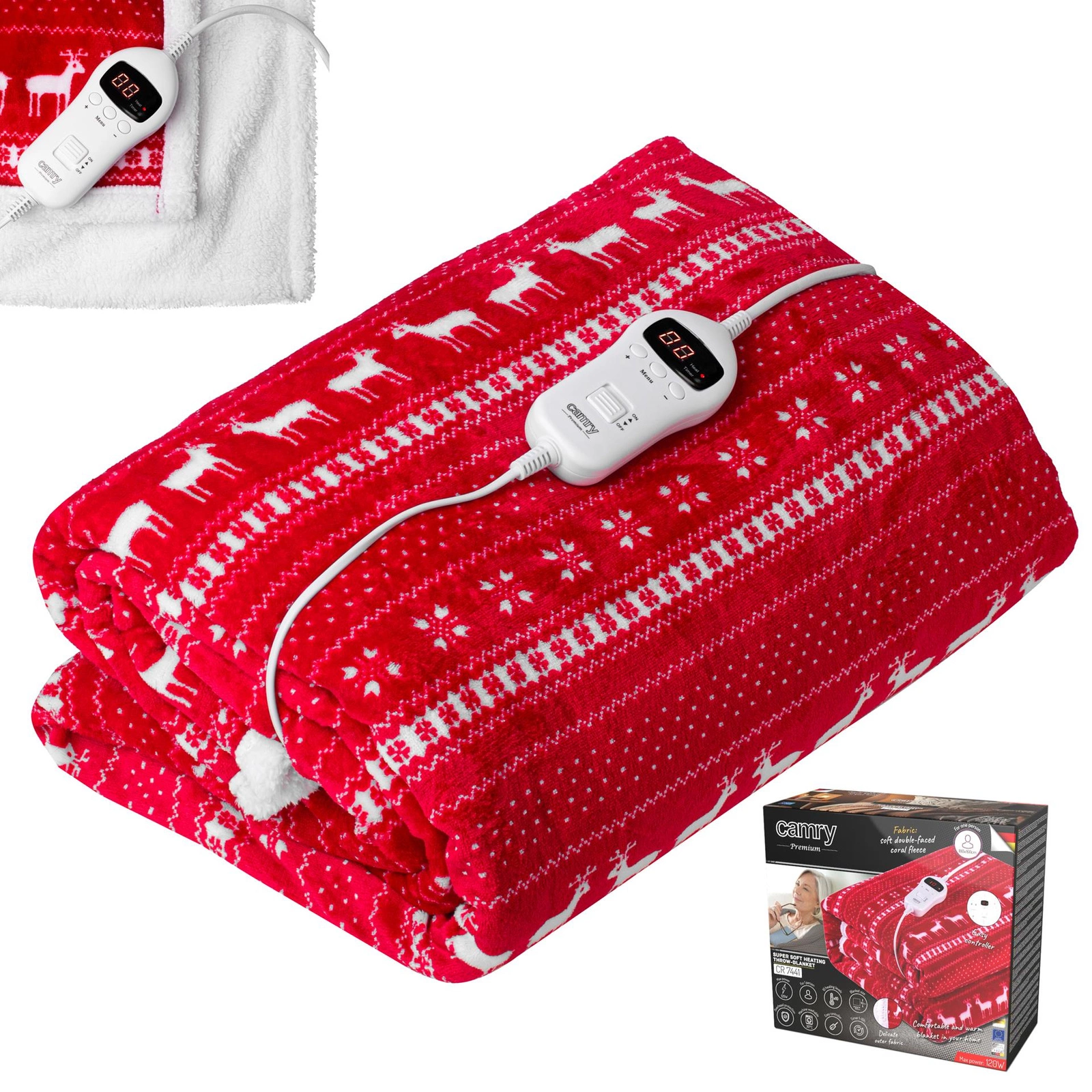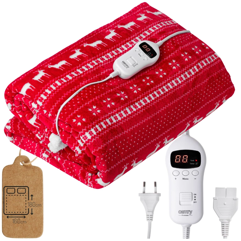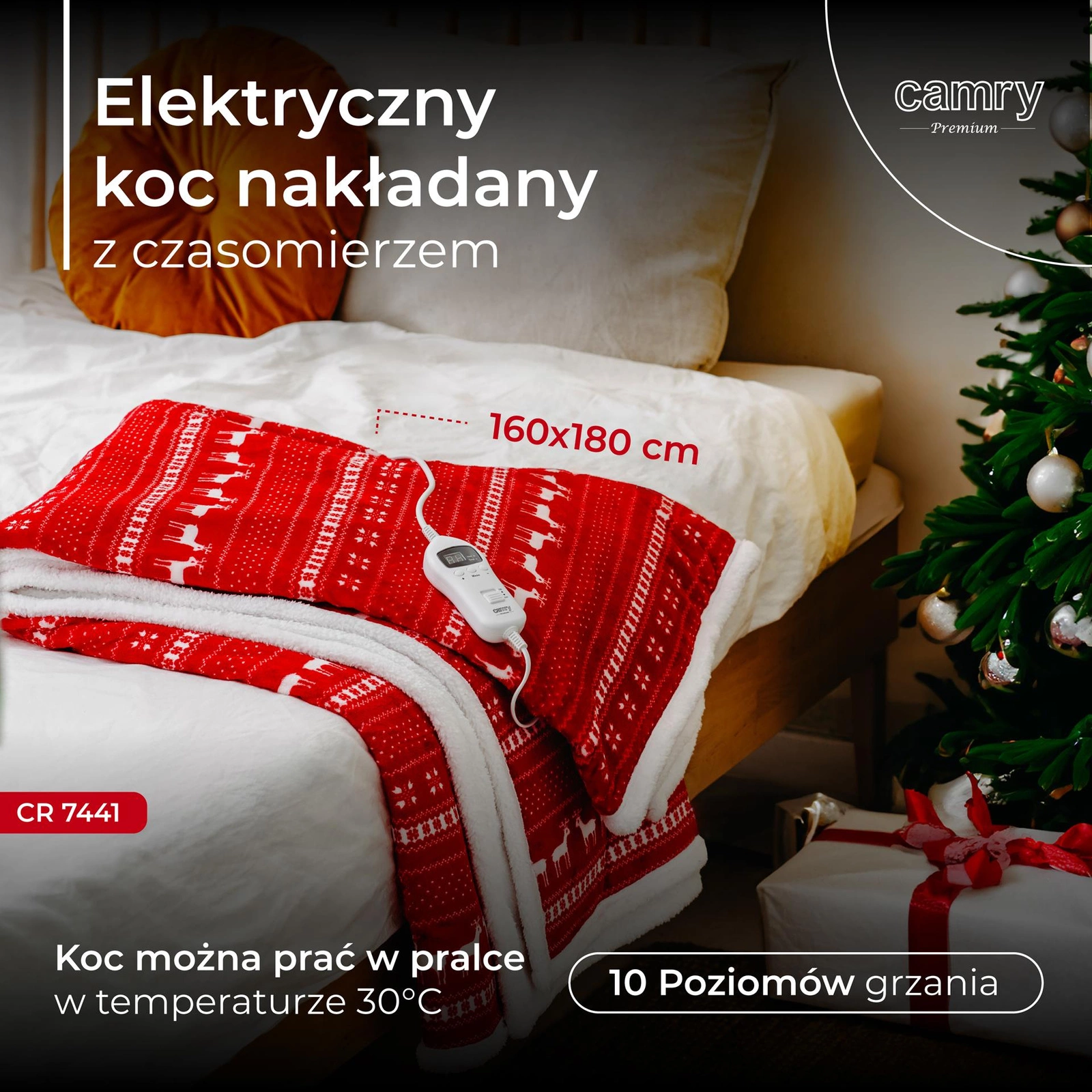 Koc elektryczny grzewczy 160x180 cm, 10 poziomów grzania, świąteczny wzór Camry CR 7441