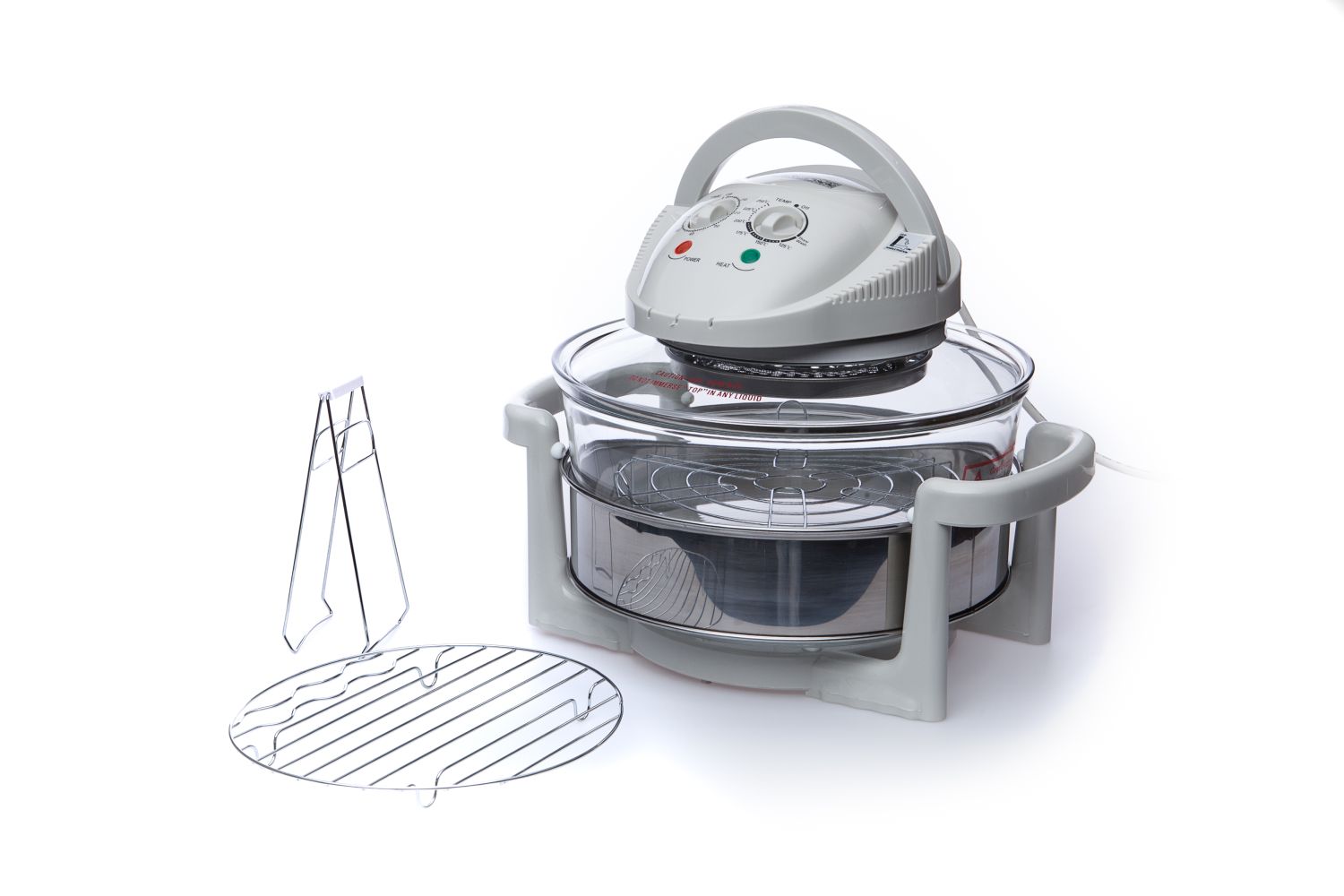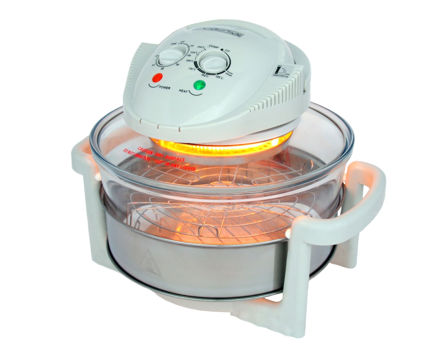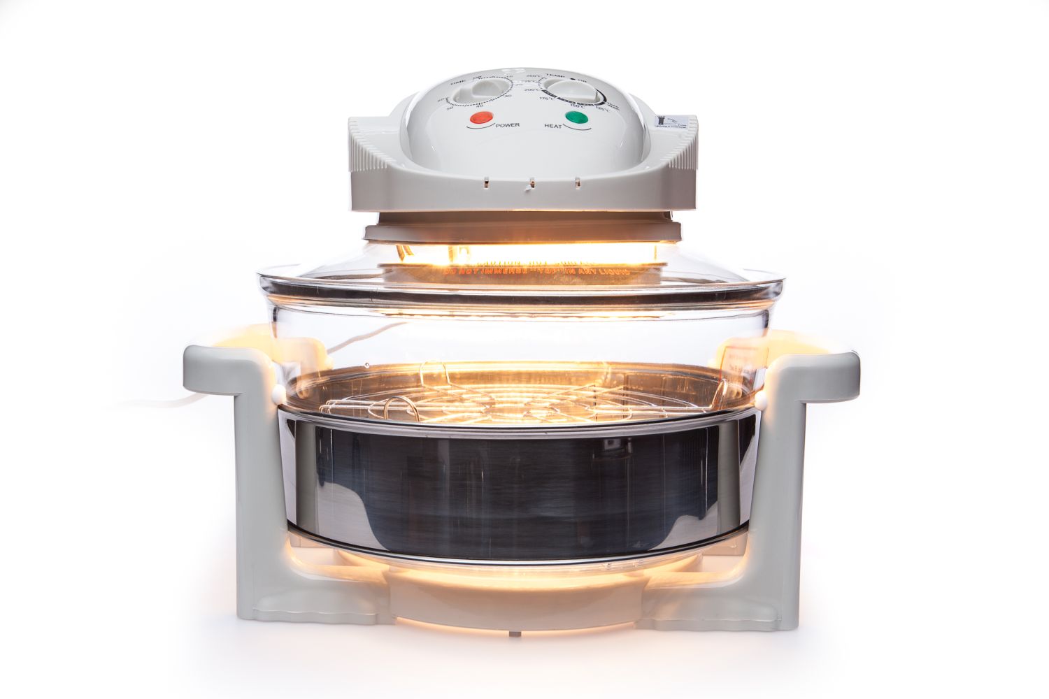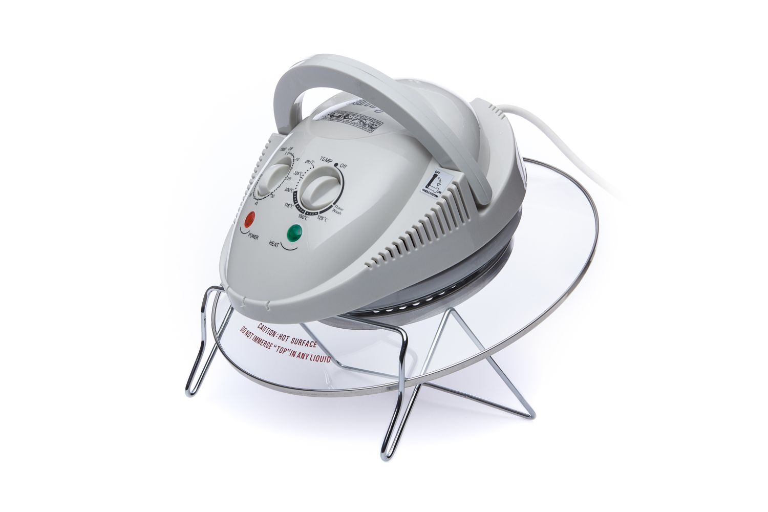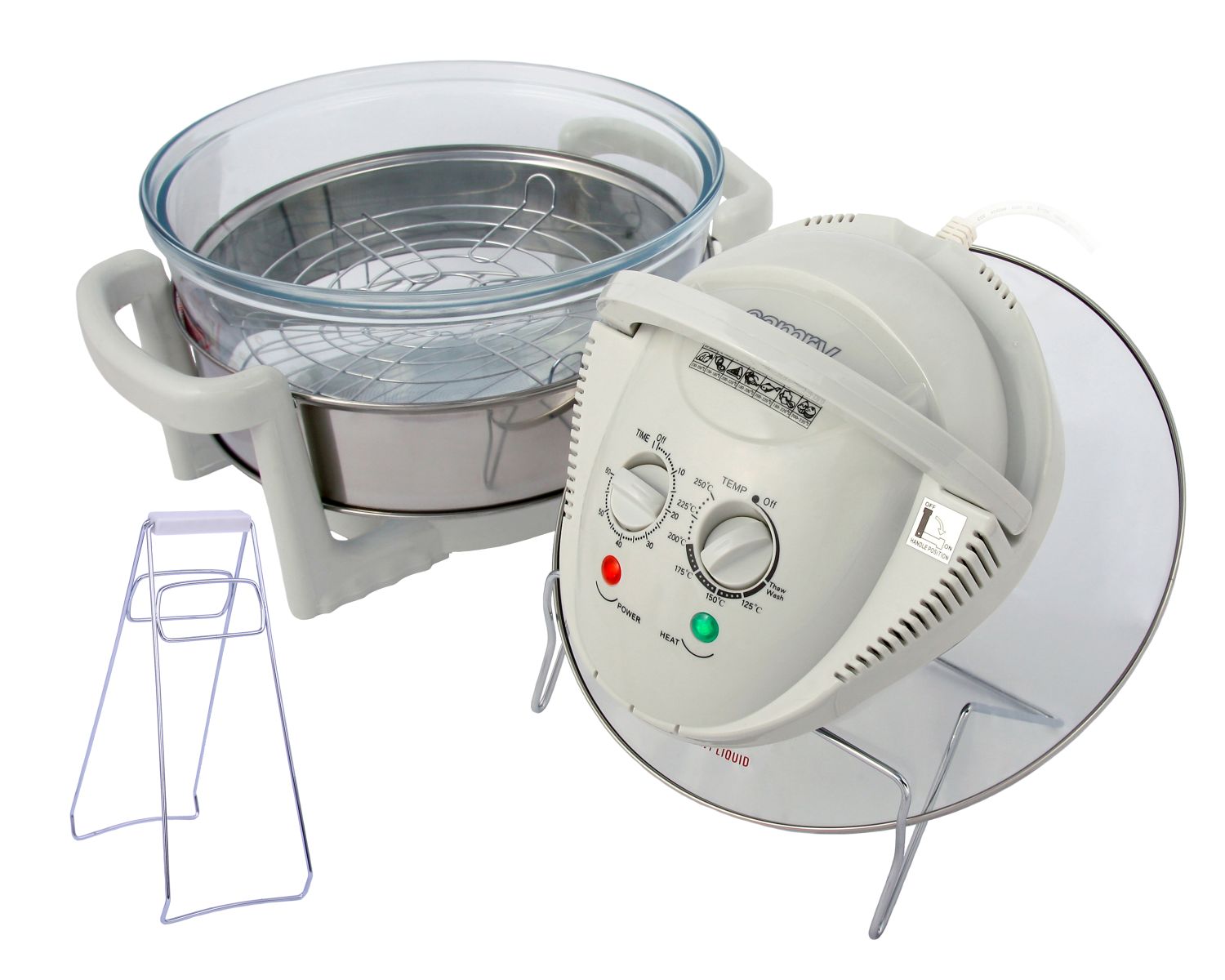Możliwe jest to, dzięki halogenowemu elementowi grzejnemu i wewnętrznemu wentylatorowi, który tworzy powiew gorącego powietrza w misie ze szkła żaroodpornego. Cyrkulując, powietrze szybko i równomiernie ogrzewa całą zawartość Twoich potraw. W ten sposób Kombiwar halogenowy łączy w sobie zalety kuchenki mikrofalowej i piekarnika elektrycznego z termoobiegiem, z tą różnicą, że nie napromieniowuje jedzenia i jest znacznie bardziej energooszczędny od dużych piekarników. Jednocześnie przygotowanie w kombiwarze odbywa się beztłuszczowo, dzięki czemu możesz przygotować pyszne dania w sposób zdrowszy, niż na przykład smażąc je na patelni.