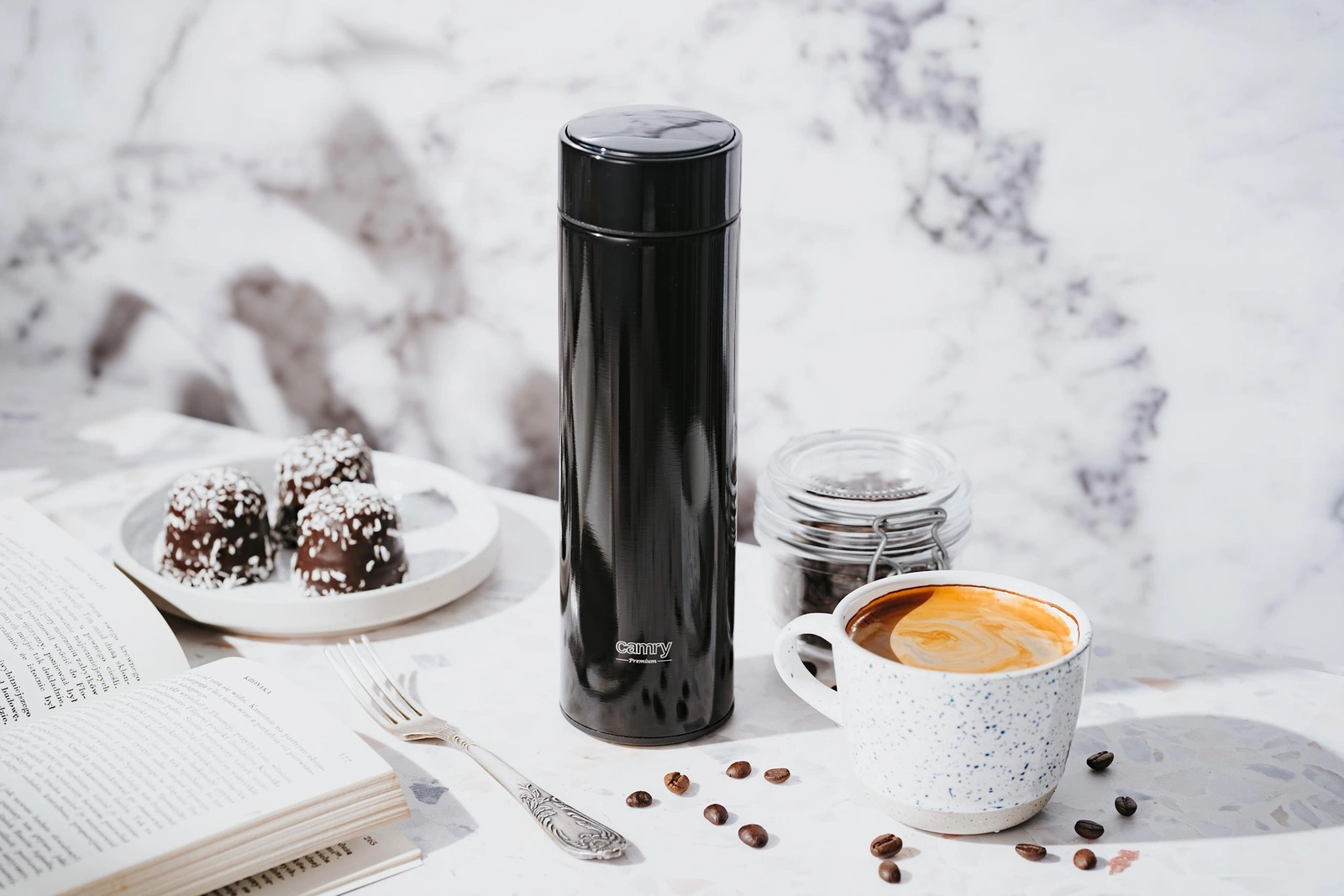 Termos Camry 4507 z wyświetlaczem dotykowym LED, wskazującym aktualną temperaturę napoju, to świetne rozwiązanie dla miłośników gorących napojów. Dzięki temu można łatwo monitorować temperaturę ulubionego napoju w czasie rzeczywistym. Wyświetlacz LED umożliwia precyzyjne odczytywanie temperatury, co pozwala uniknąć poparzeń lub picia zbyt zimnych napojów. Dodatkowo dotykowy wyświetlacz sprawia, że obsługa termosu jest łatwa i intuicyjna. Urządzenie posiada precyzyjny czujnik termiczny – odczyt temp. po odwróceniu do góry dnem na 3 sekundy. Izolacja próżniowa oraz podwójne ścianki utrzymują temperaturę dla napojów gorących 8 godzin lub zimnych do 12 godzin. W zestawie znajduje się sitko separujące fusy. Wbudowana bateria wyświetlacza LED ma bardzo długą żywotność do 30.000 dotknięć. Pojemność termosu to 473ml. Ten nowoczesny termos to nie tylko praktyczne urządzenie, ale również stylowy dodatek dla osób ceniących sobie wygodę i nowoczesne rozwiązania.