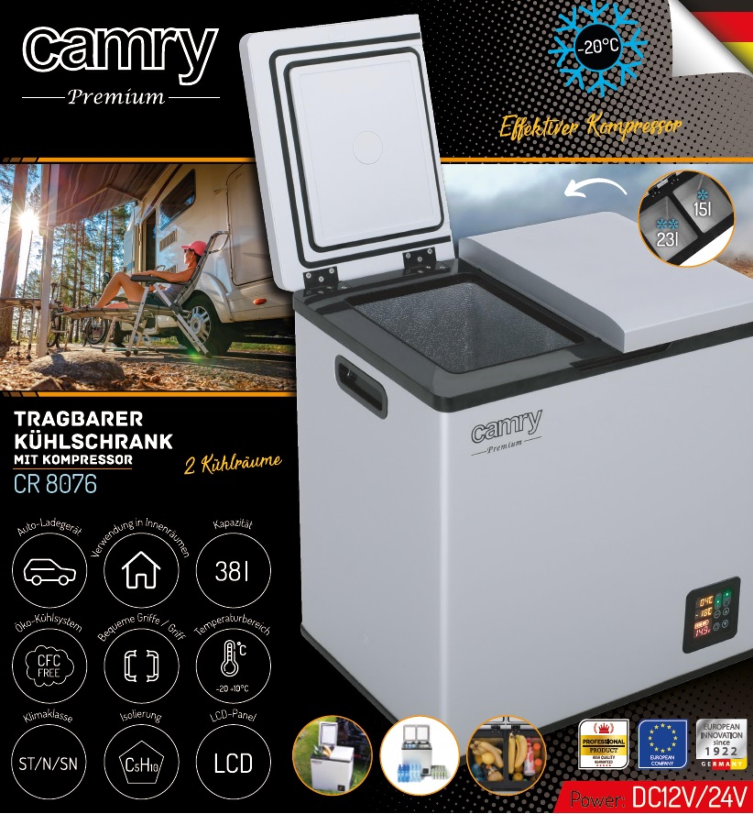 Lodówka Kompresorowa Turystyczna 38L z Wydajnym Chłodzeniem, Lekka i Przenośna - Camry CR 8076